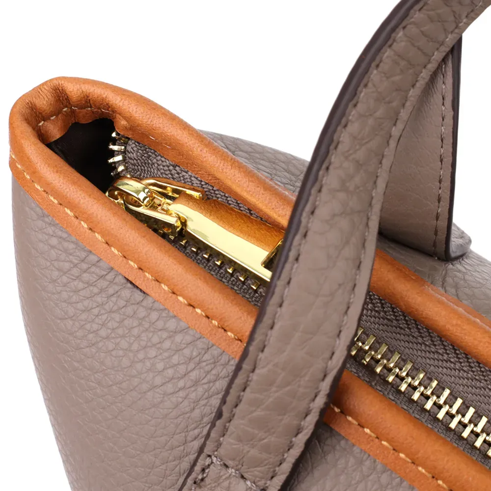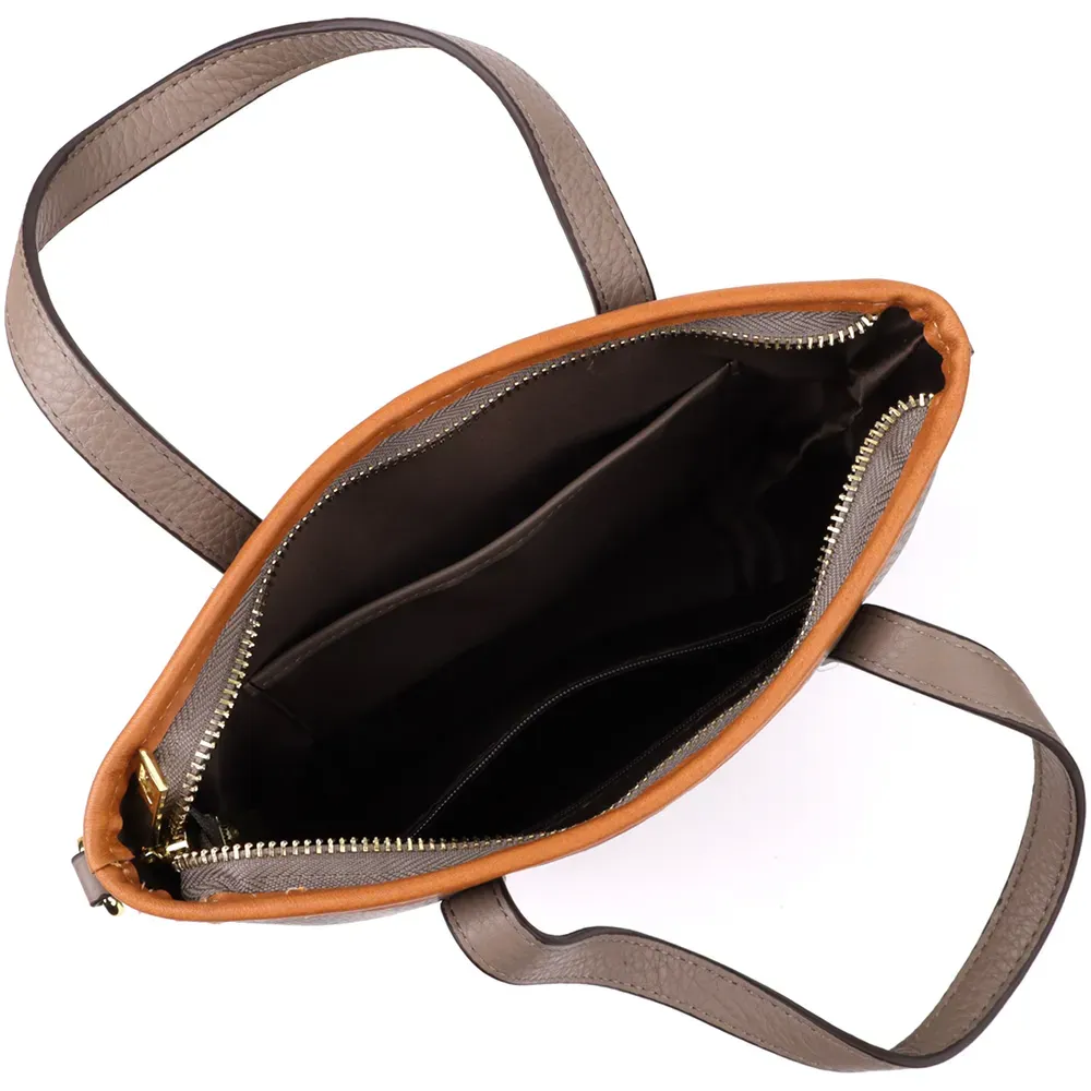 Сумка має одне основне відділення, яке закривається на блискавку, забезпечуючи надійний захист вмісту. Усередині розташовані дві кишені: потаємна на блискавці — для зберігання цінних дрібниць, і відкрита — для предметів, до яких потрібний швидкий доступ.