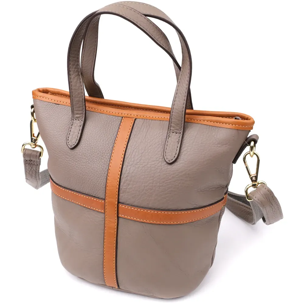Практична містка сумка з натуральної шкіри для жінок Vintage 22998 Сірий