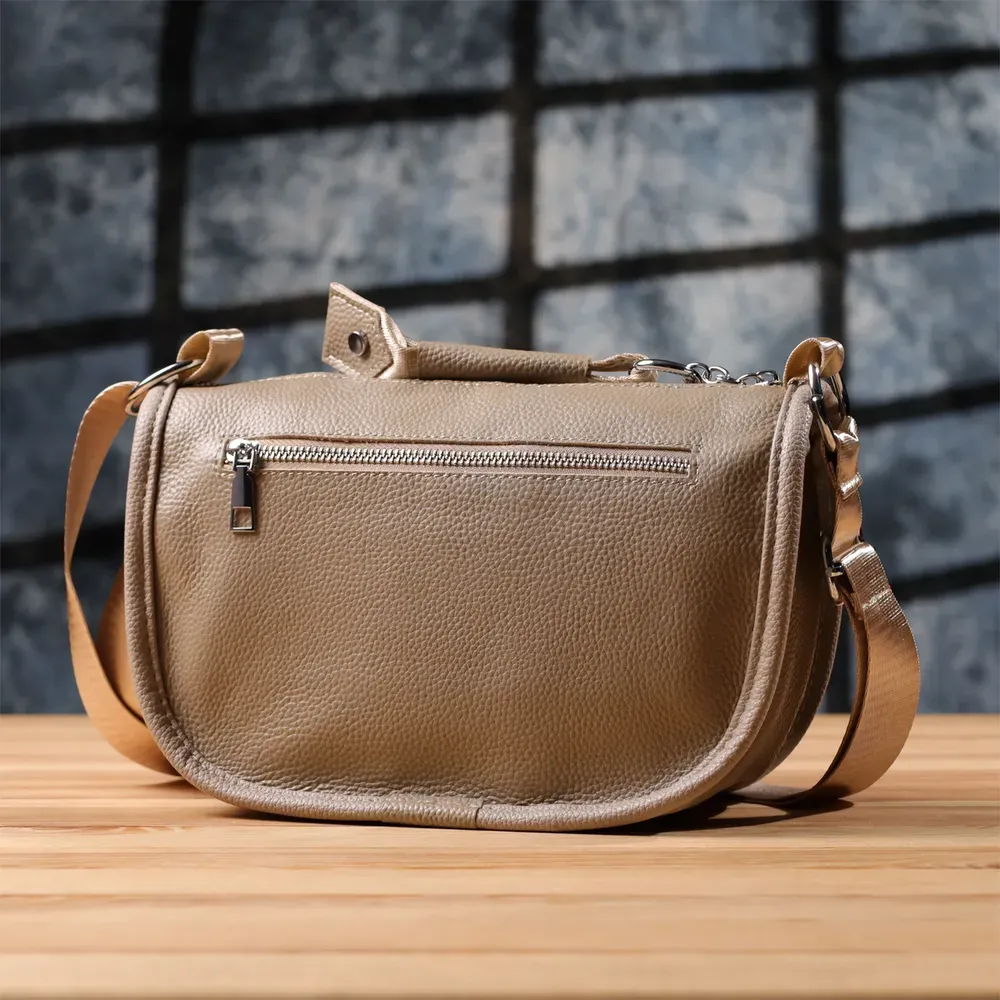 Практична напівкругла сумка для жінок з натуральної шкіри Vintage 22907 Бежевий