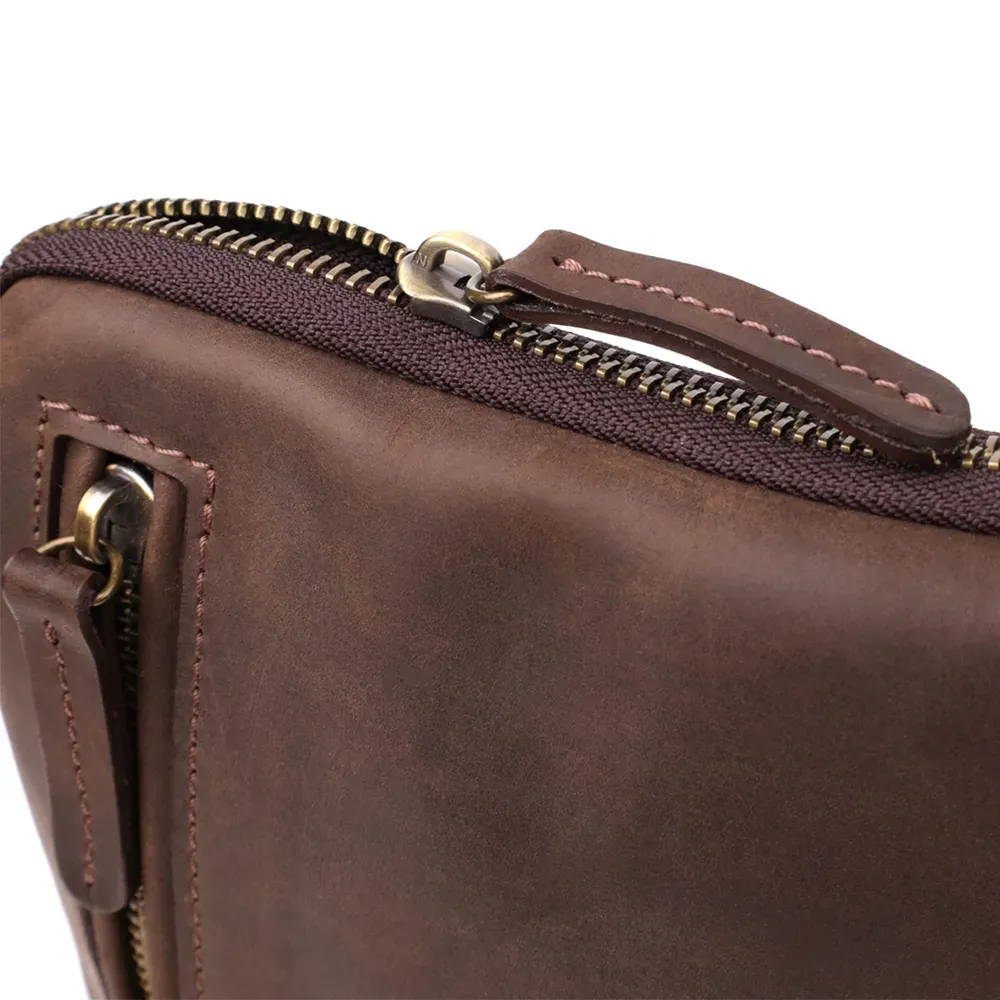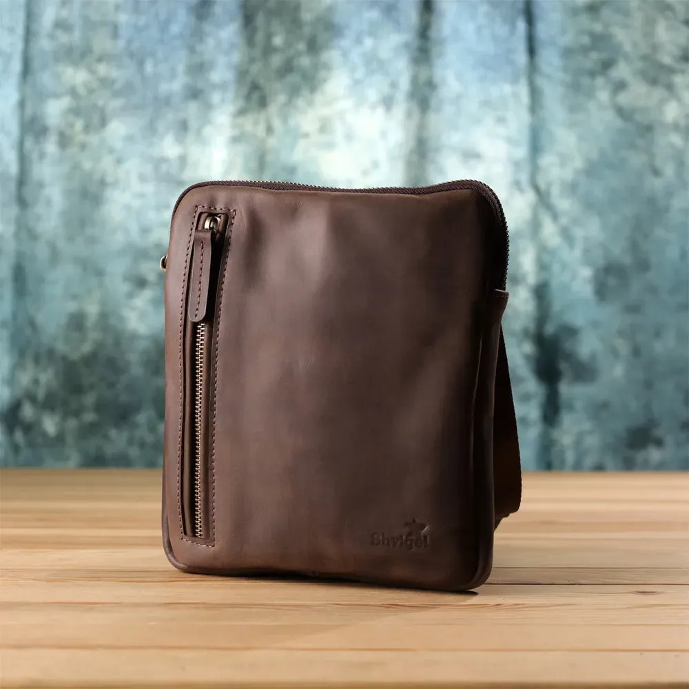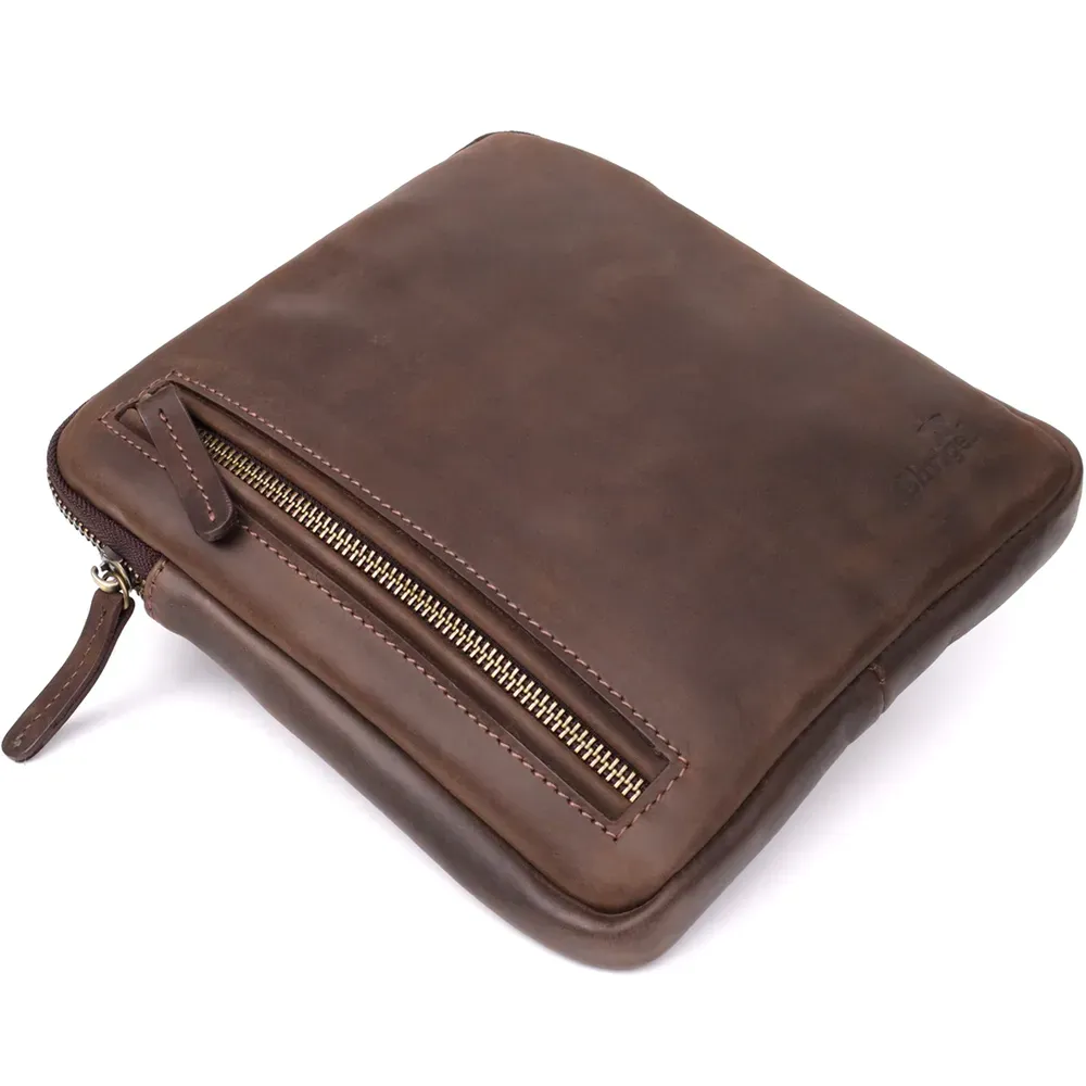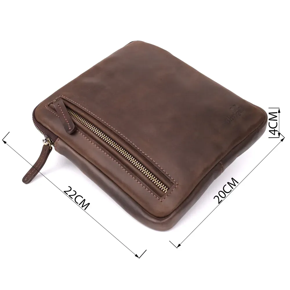 Стильна чоловіча вертикальна сумка SHVIGEL виконана з натуральної коричневої вінтажної шкіри, яка згодом набуває благородного відтінку та шарму. Компактний розмір та продумане внутрішнє наповнення роблять аксесуар практичним та зручним для повсякденного використання.