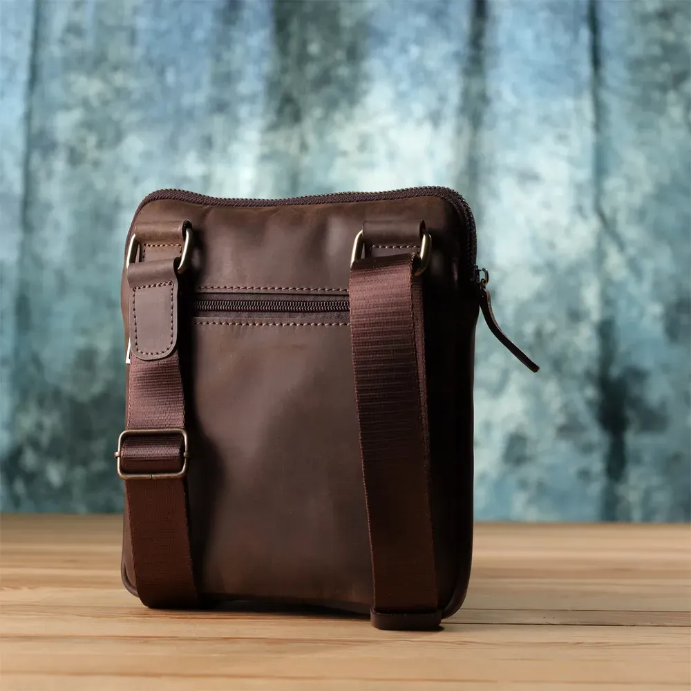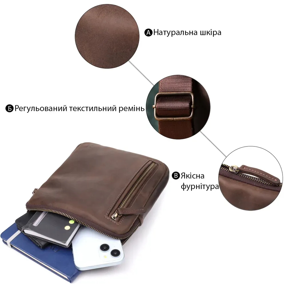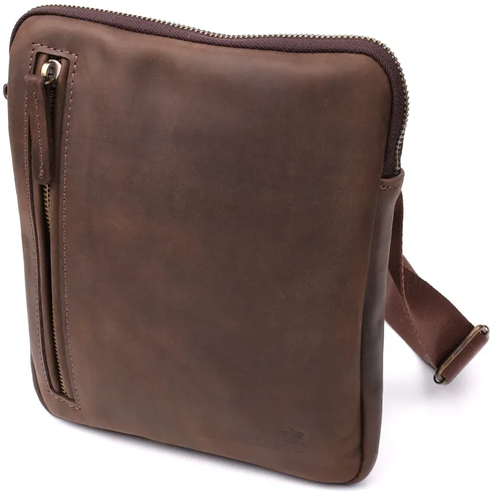Практична сумка для чоловіків на плече з натуральної вінтажної шкіри Shvigel 23149 Коричневий