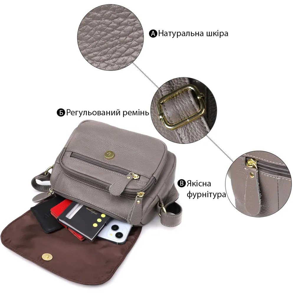 Практична сумка з натуральної шкіри для стильних жінок Vintage 22974 Сірий
