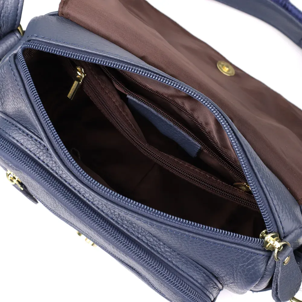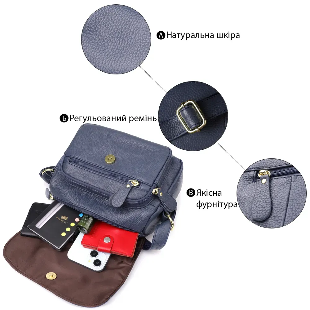 Практична сумка з натуральної шкіри для жінок Vintage 22971 Синій