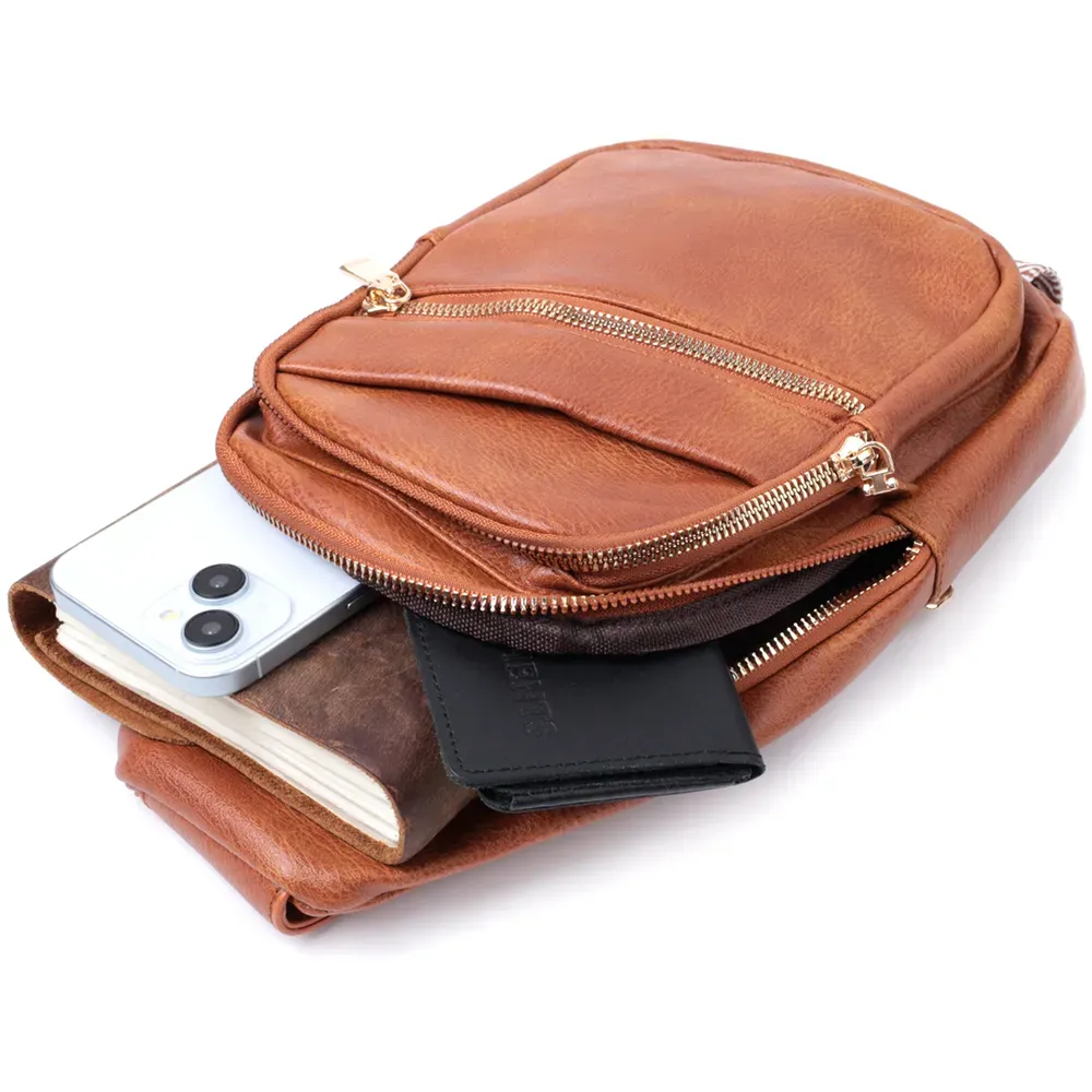 Практична жіноча сумка з однією лямкою через плече з екошкіри Vintage 22758 Рудий