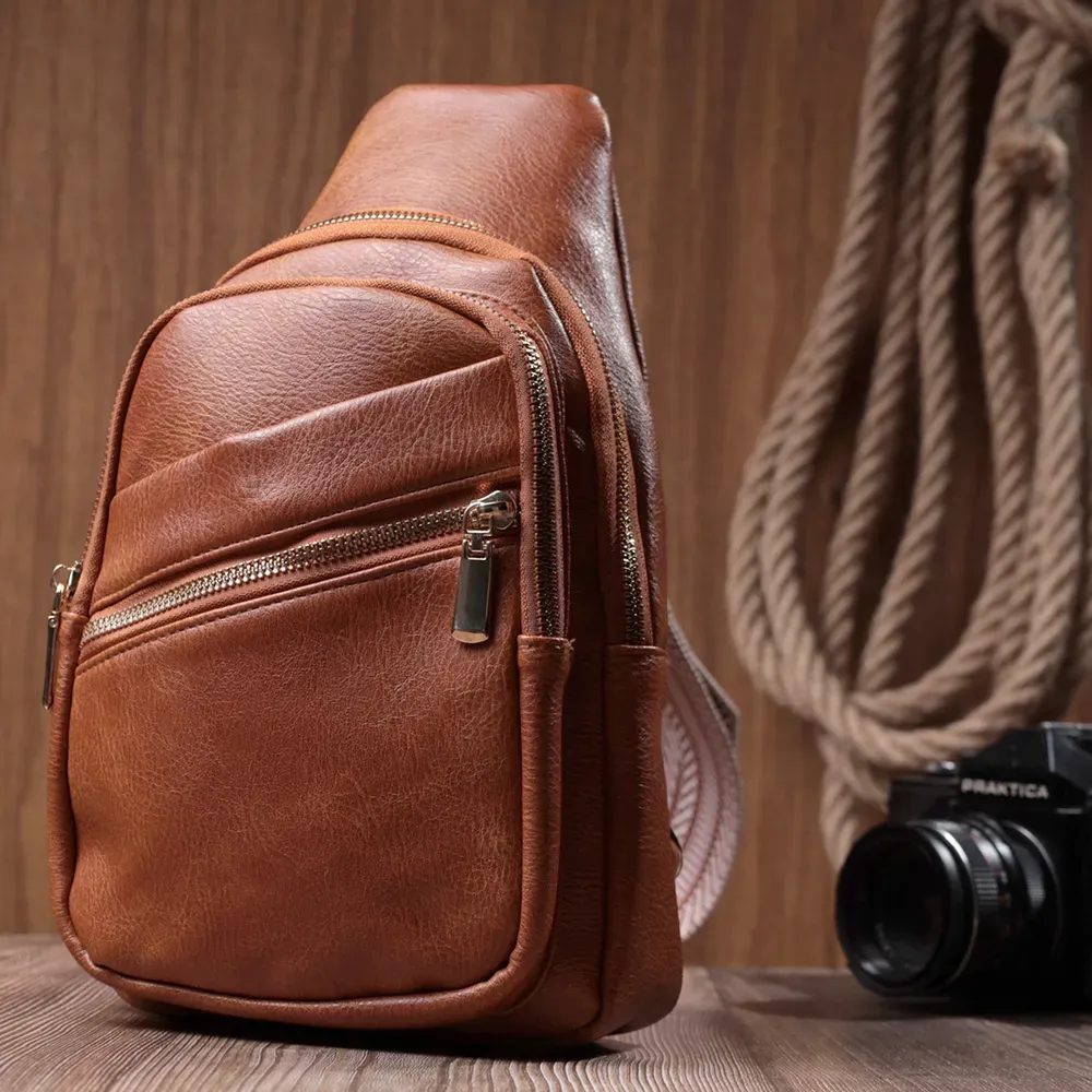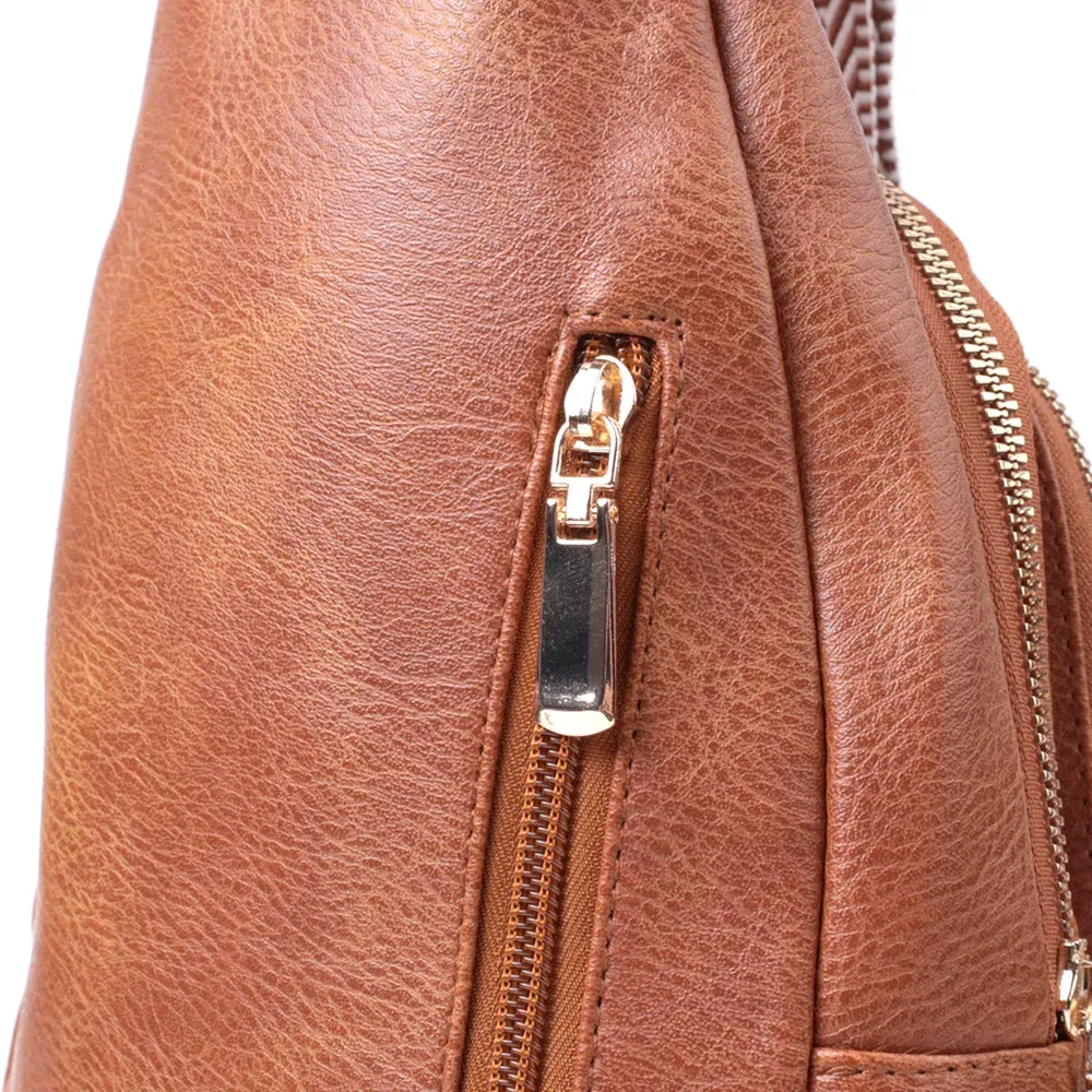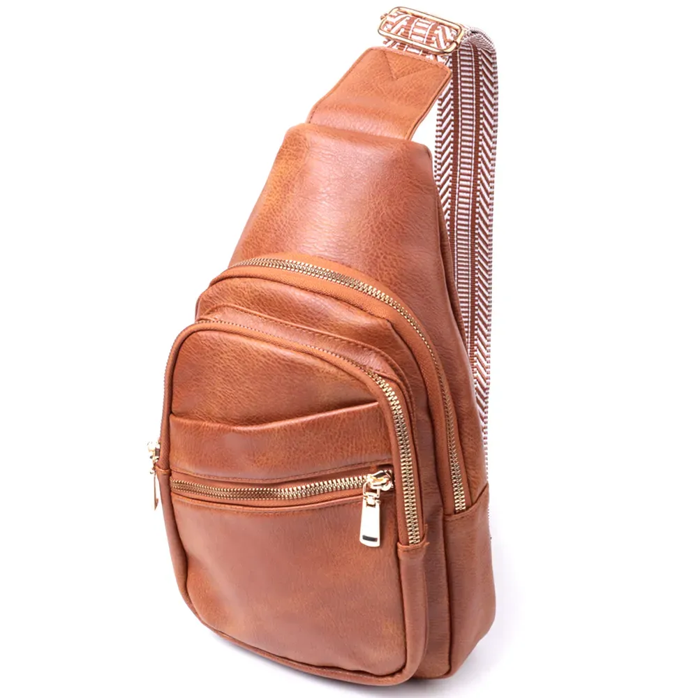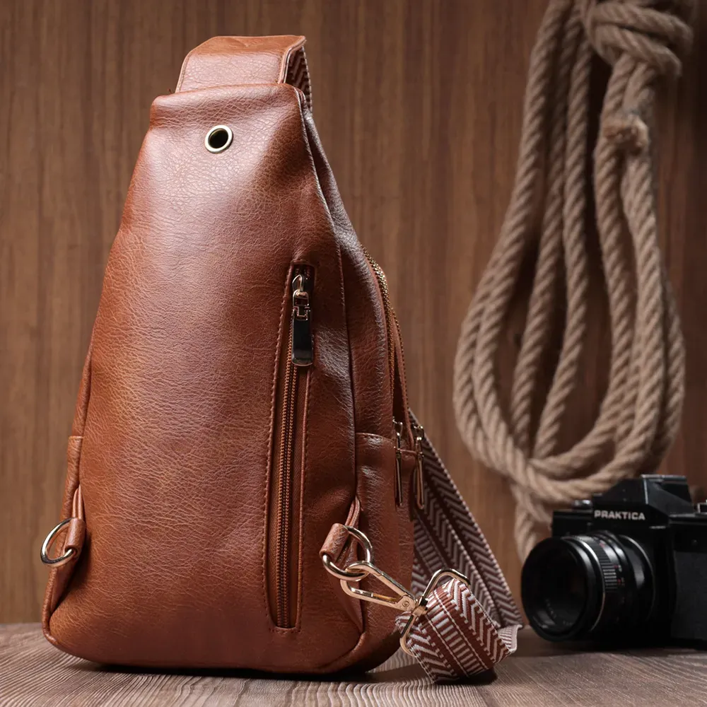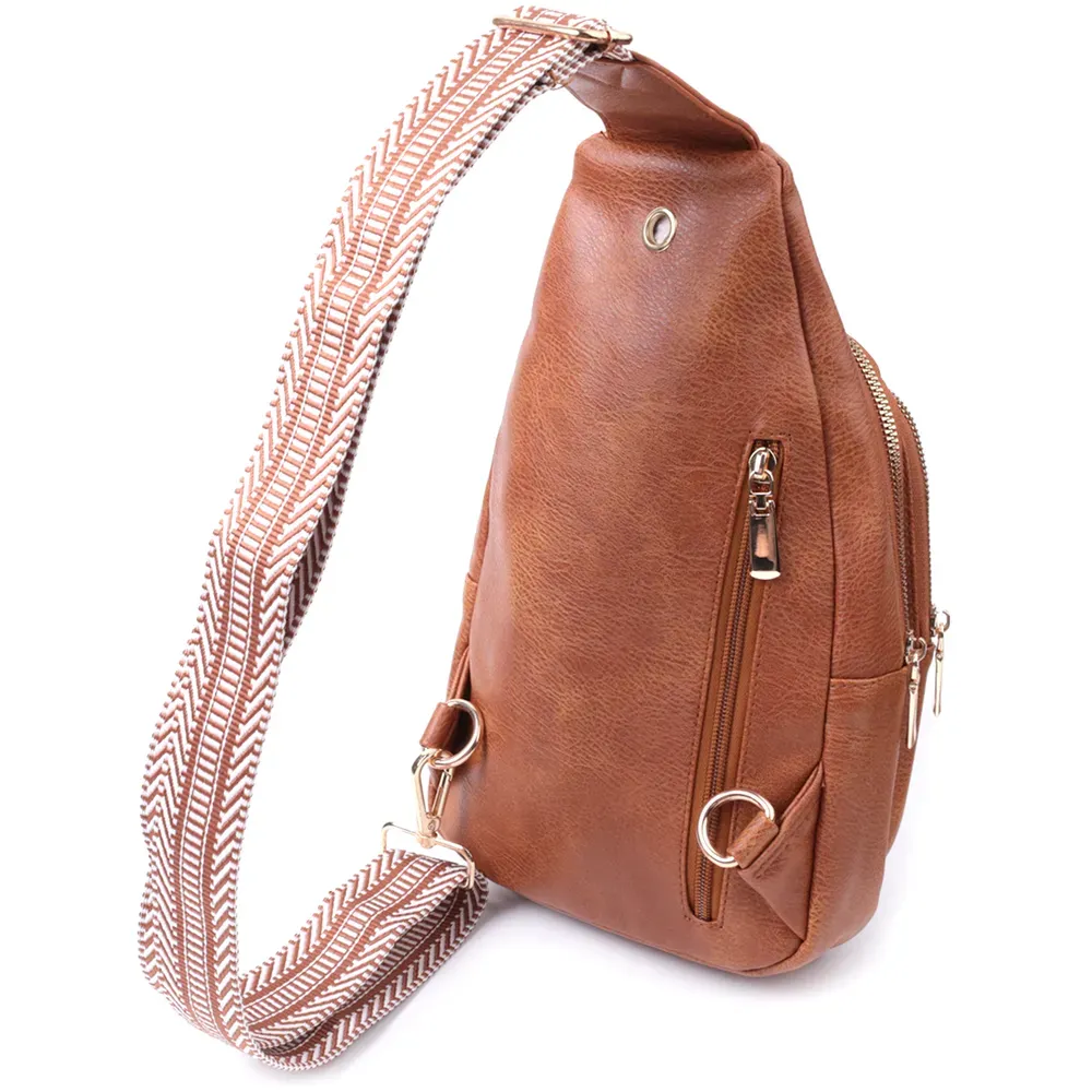 Пропонуємо до Вашої уваги зручну слінг сумку з екошкіри топового рудого кольору. Дана модель складається з одного основного відділення, яке закривається на блискавку і в якому знаходиться кишеня на блискавці та кишеня відкритого типу всередині, а також чотирьох кишень зовні та одного отвору для кабелю або навушників, що дуже зручно в сучасному світі. Основною фішкою моделі є зручний регульований плечовий ремінець у етнічному стилі, що дуже модно вже кілька сезонів. Екошкіра – високоякісна альтернатива натуральному матеріалу, яка дуже стійка до тертя, до низьких температур, відмінно носиться на відміну від інших штучних матеріалів, а також має гіпоалергенний склад на відміну від натуральної шкіри.
