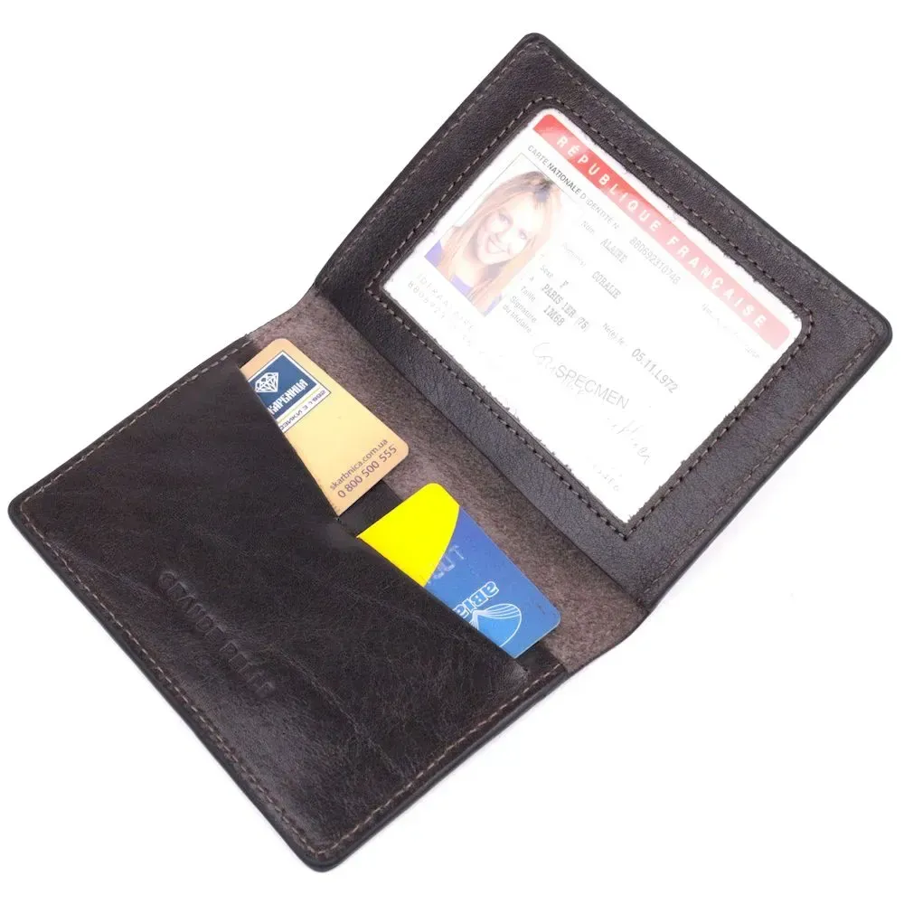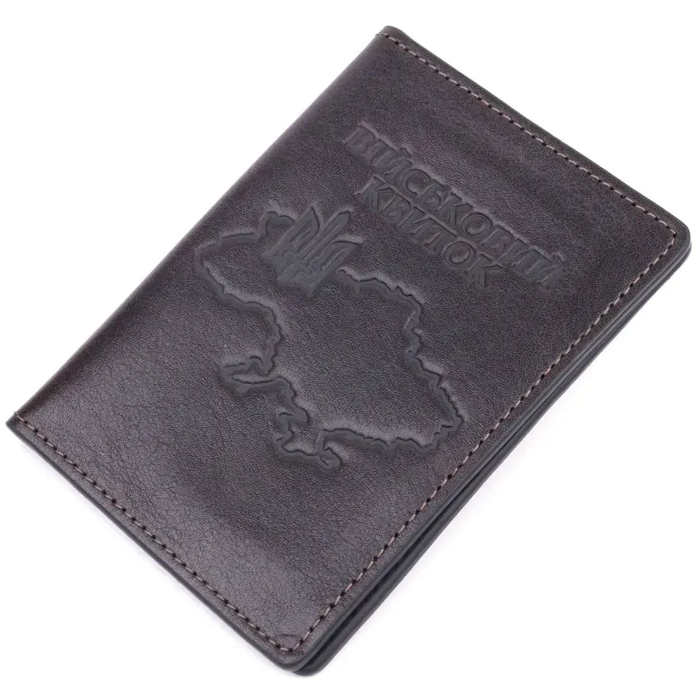 Практична обкладинка із глянсової шкіри на військовий квиток Карта GRANDE PELLE 16778 Коричнева