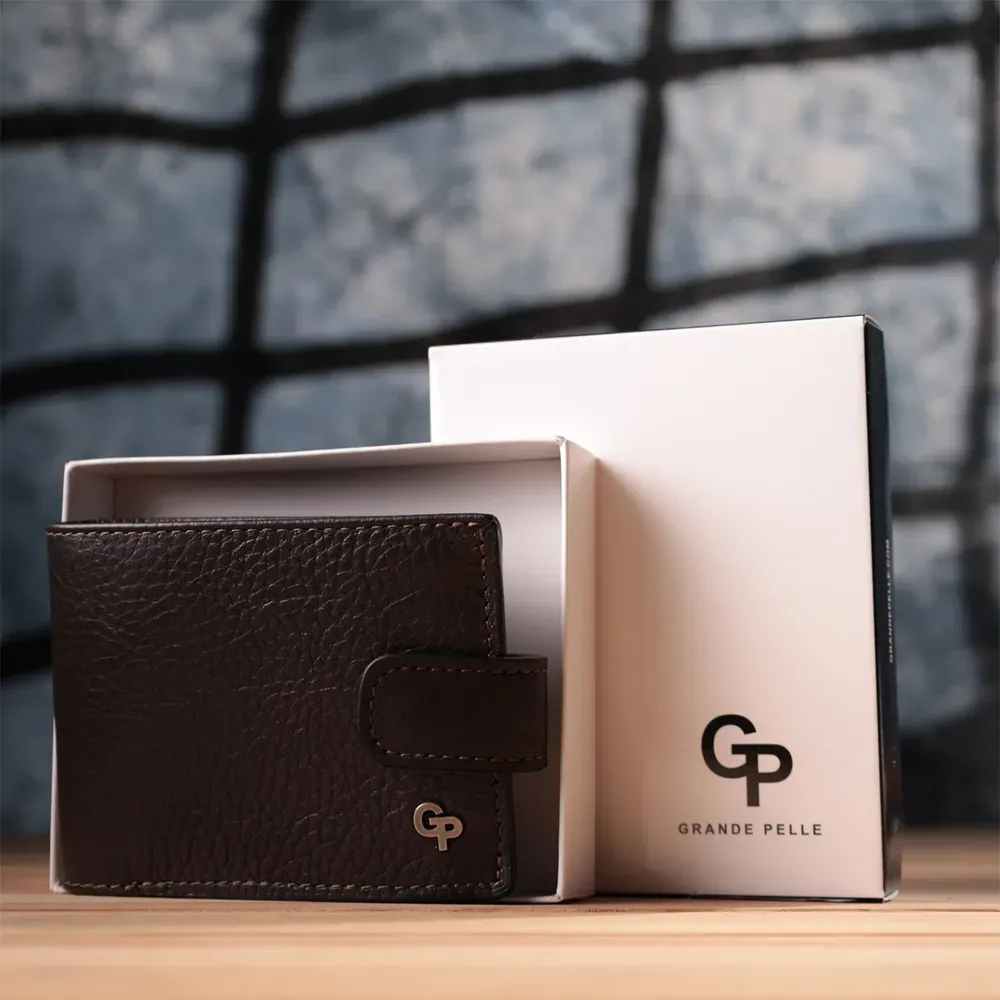 Практичне портмоне з люксової зернистої шкіри флотар GRANDE PELLE 22876 Коричневий