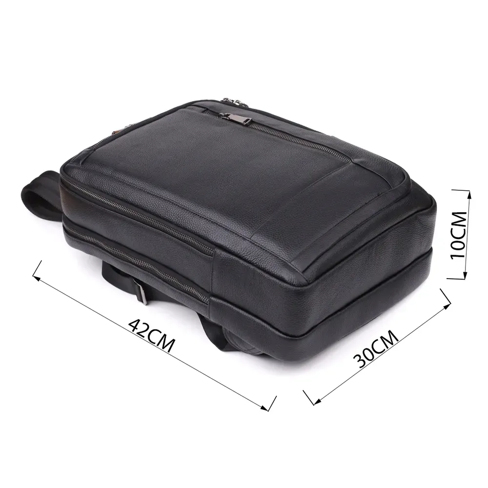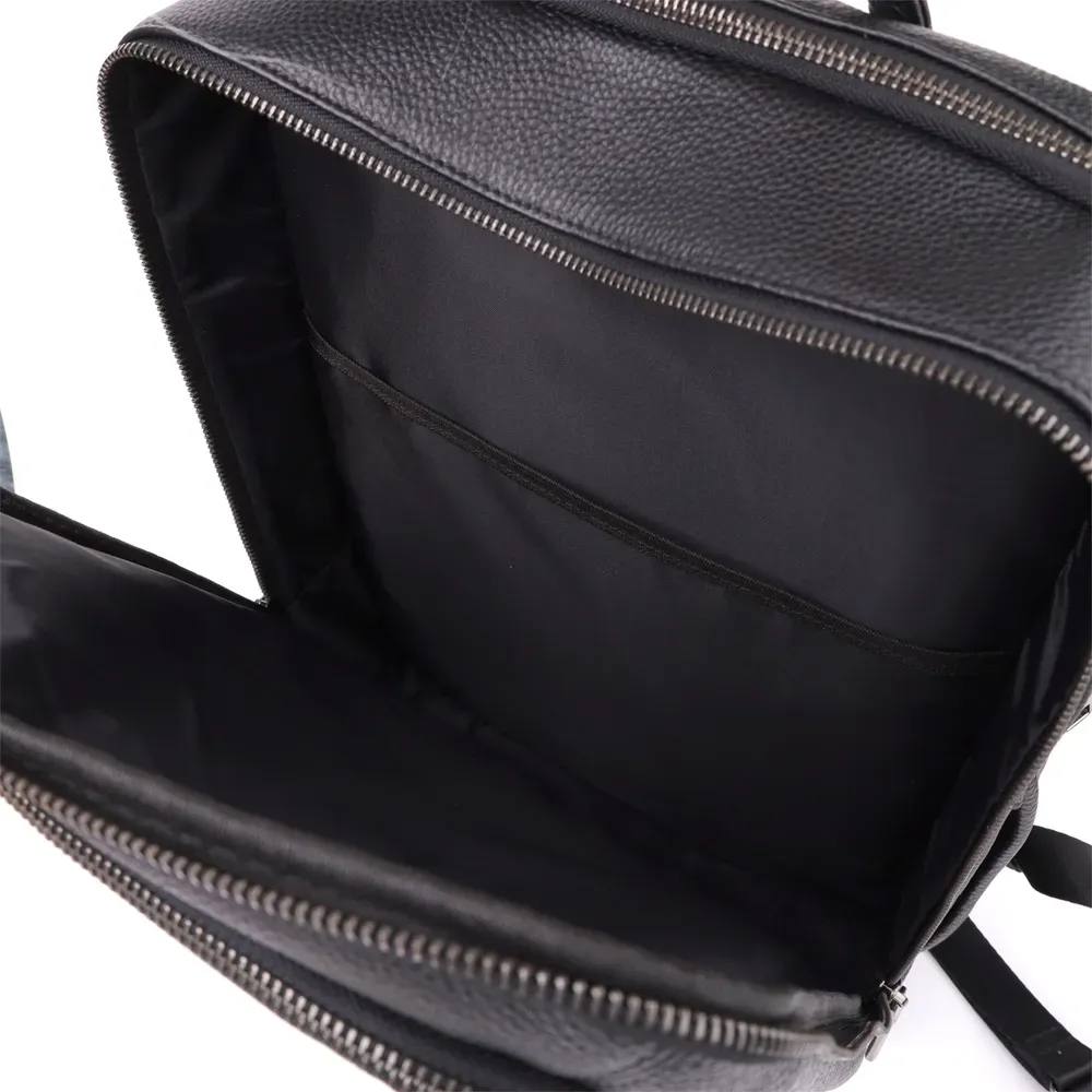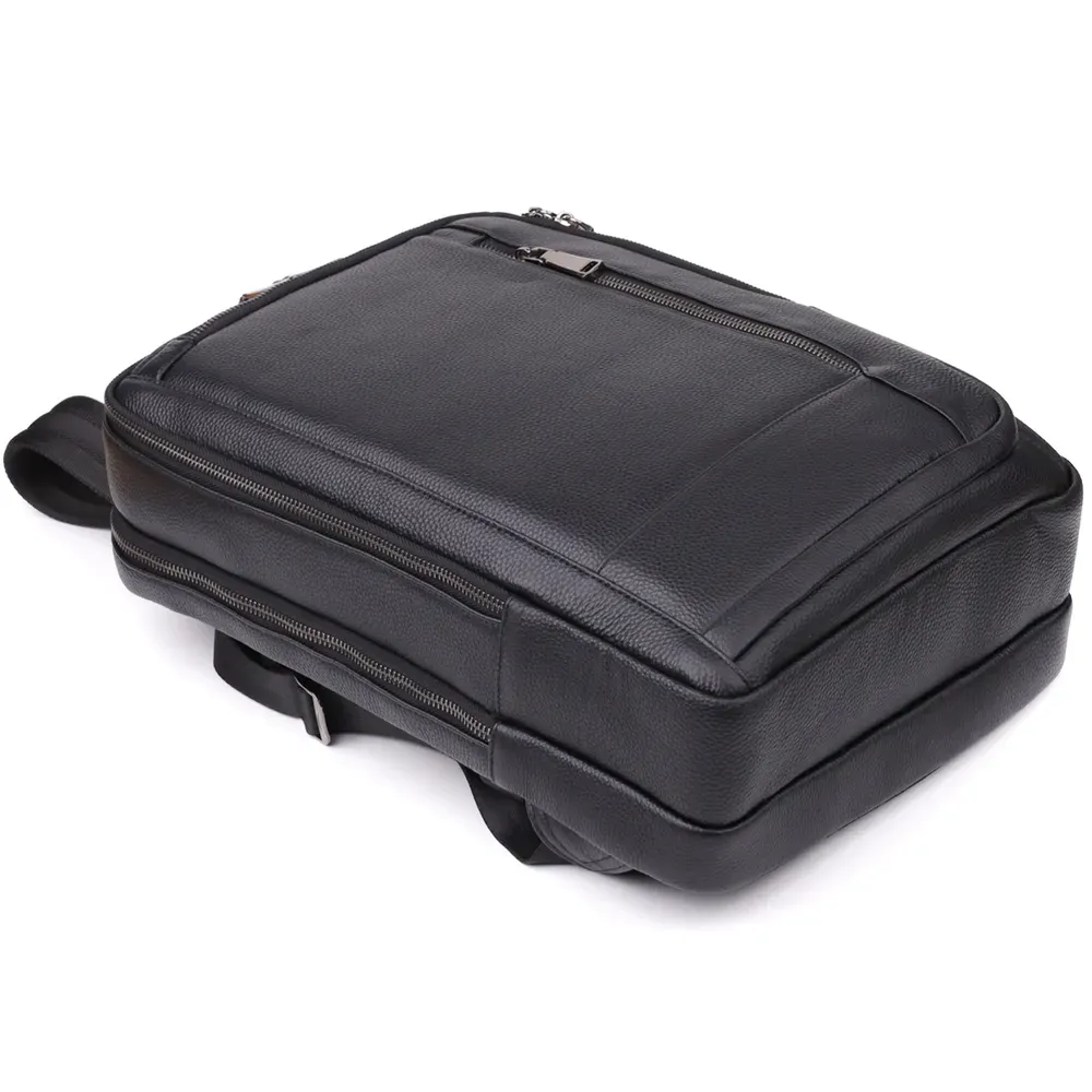 Чоловічий шкіряний рюкзак виконаний з якісної натуральної шкіри та поєднує стиль із максимальною зручністю. Модель оснащена двома основними відділеннями на блискавках з подвійними бігунками, що забезпечує швидкий доступ та зручний поділ вмісту.