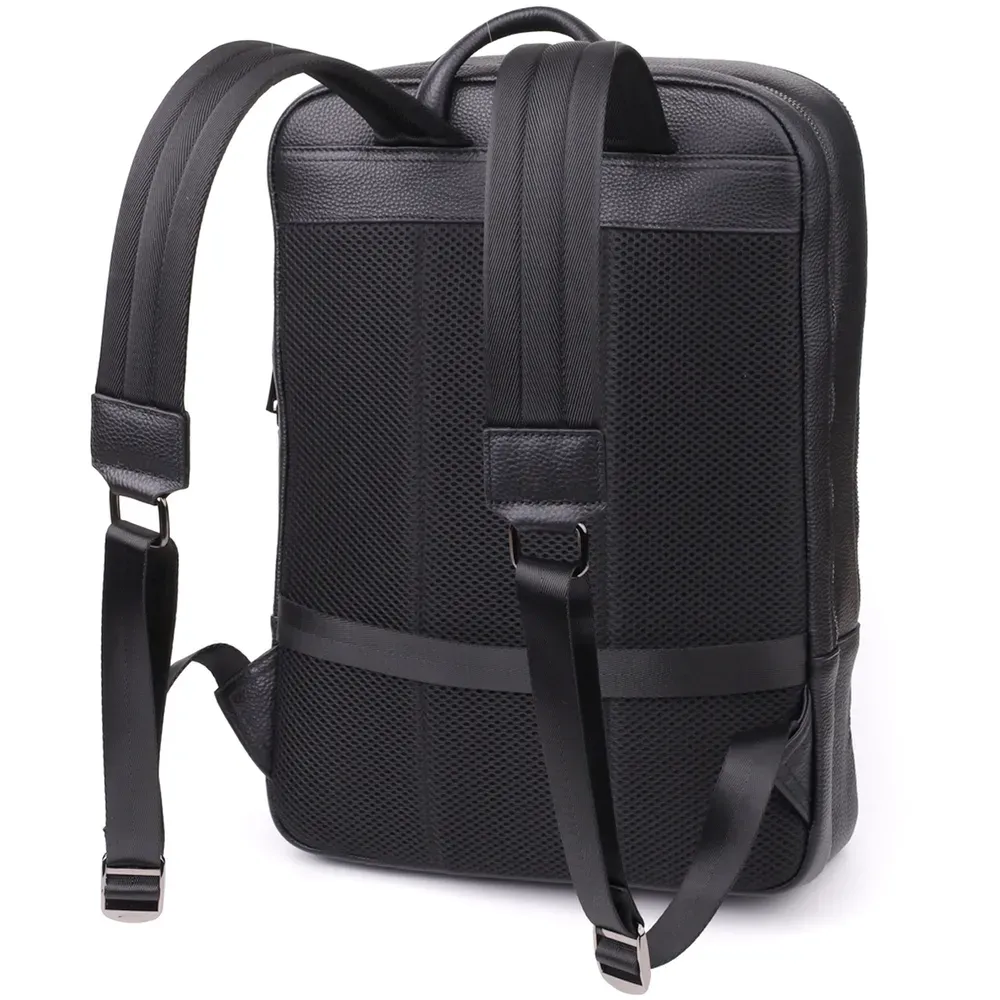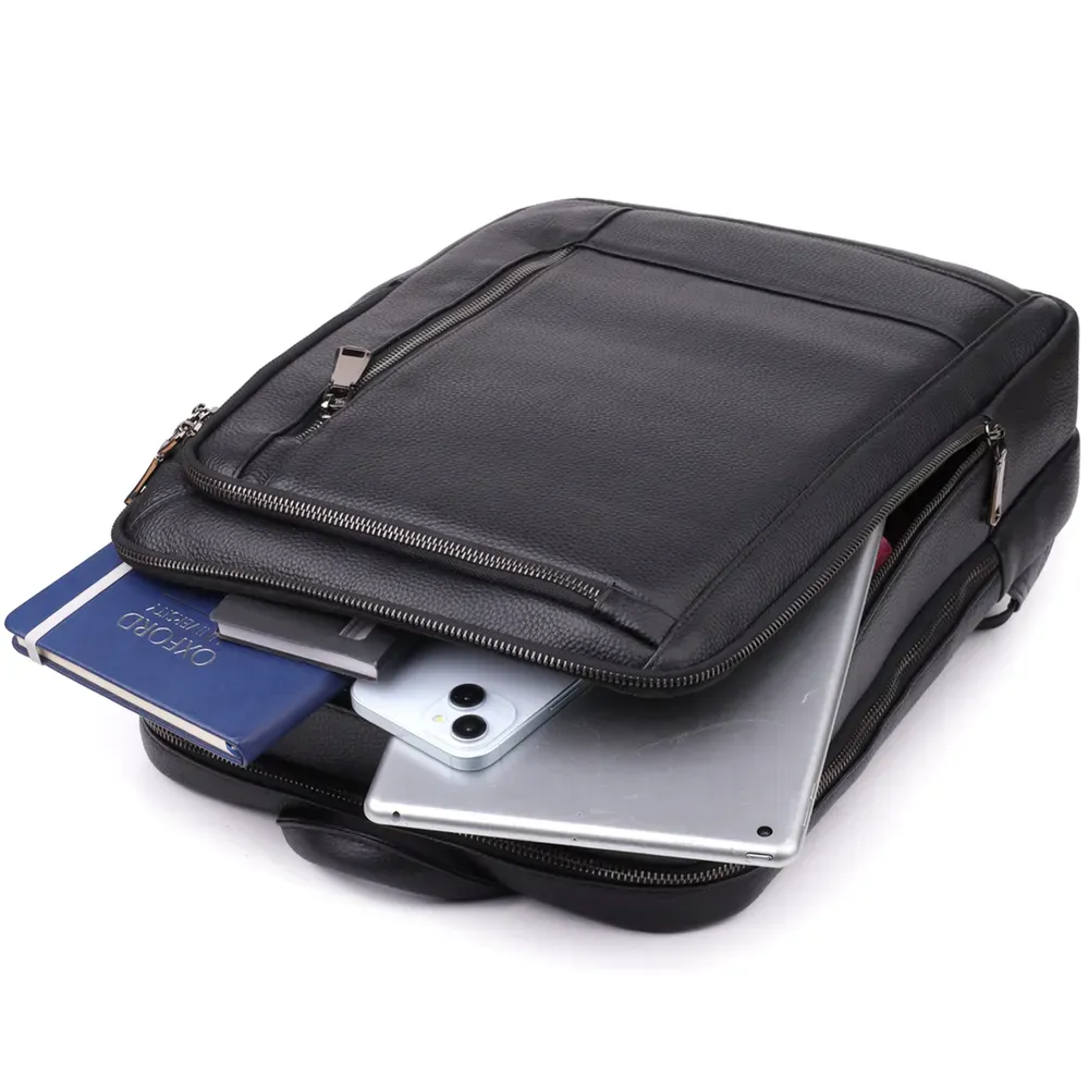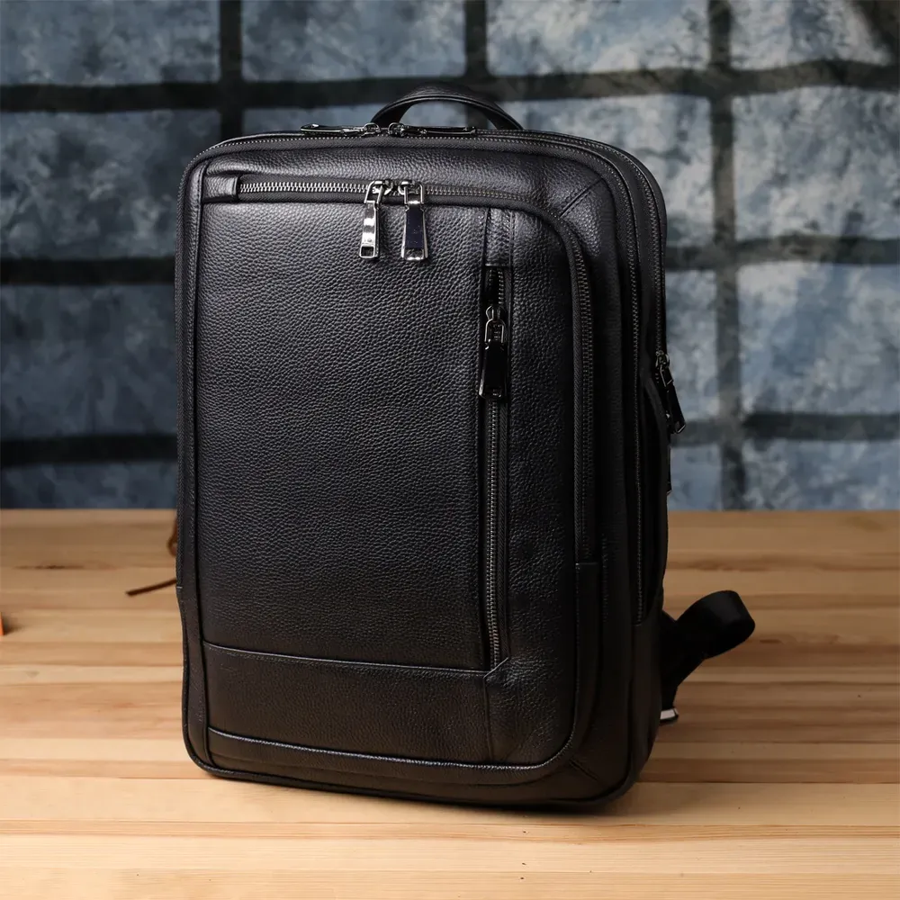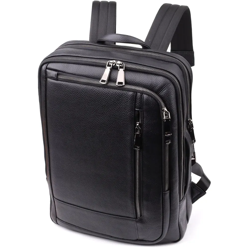 Чоловічий шкіряний рюкзак виконаний з якісної натуральної шкіри та поєднує стиль із максимальною зручністю. Модель оснащена двома основними відділеннями на блискавках з подвійними бігунками, що забезпечує швидкий доступ та зручний поділ вмісту.
