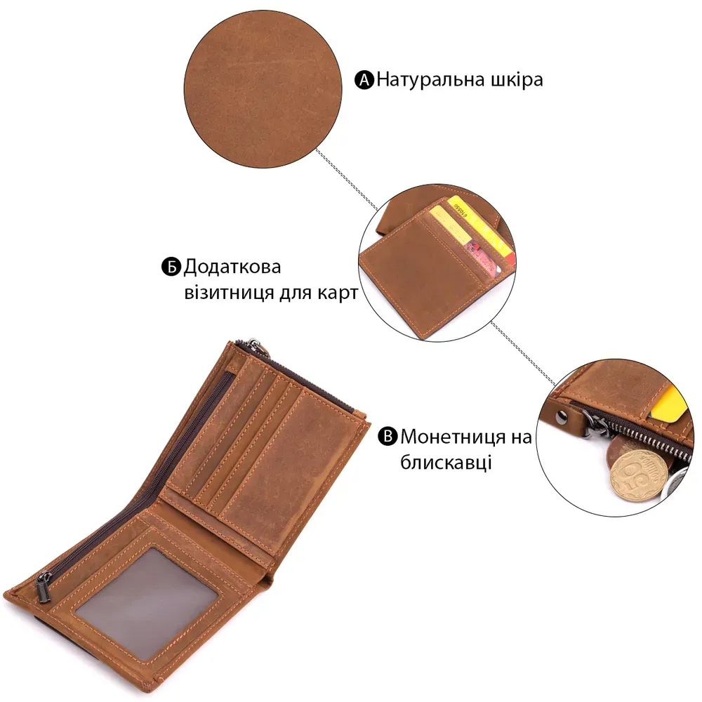 Практичний гаманець для чоловіків з натуральної шкіри 22856 Vintage Коричневий