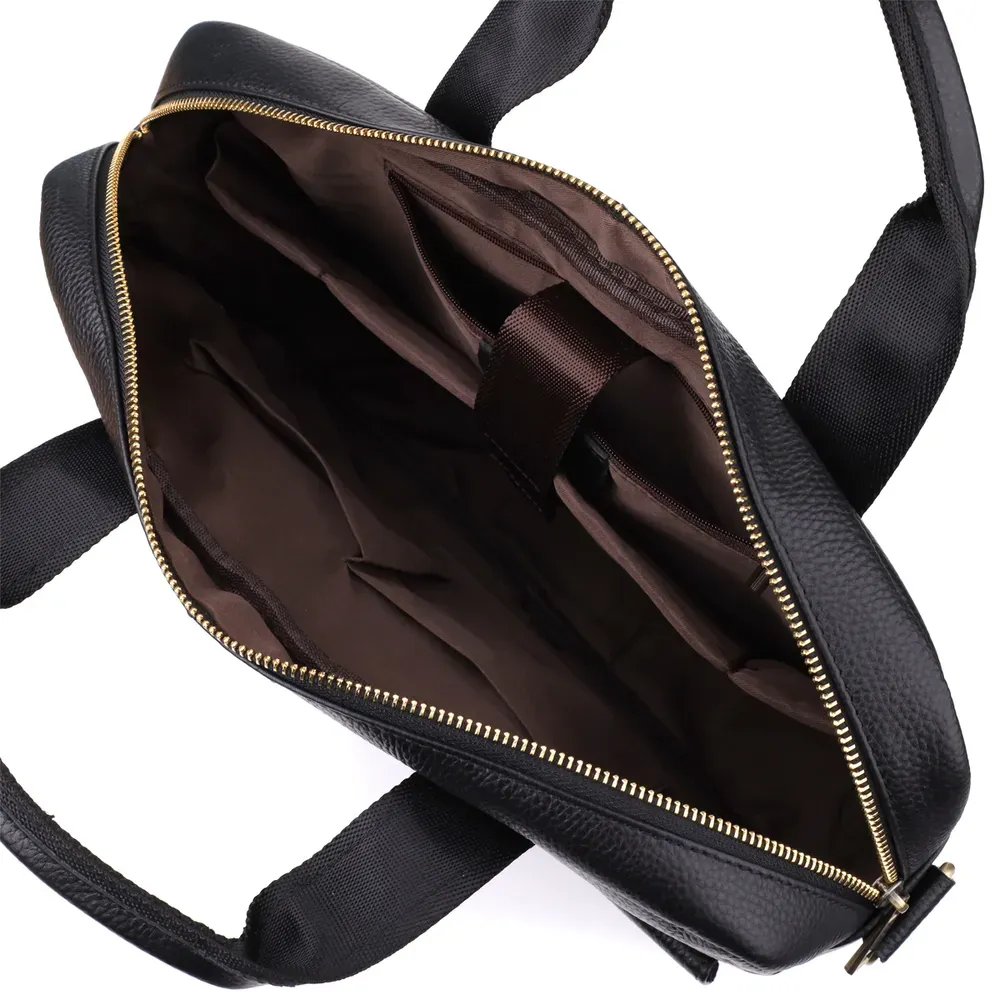 Чорний колір робить цей портфель універсальним вибором для будь-якого образу – від суворого ділового до повсякденного. Це надійний та стильний помічник для роботи, поїздок та зустрічей.