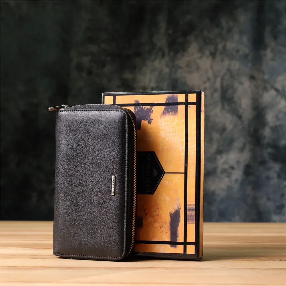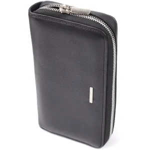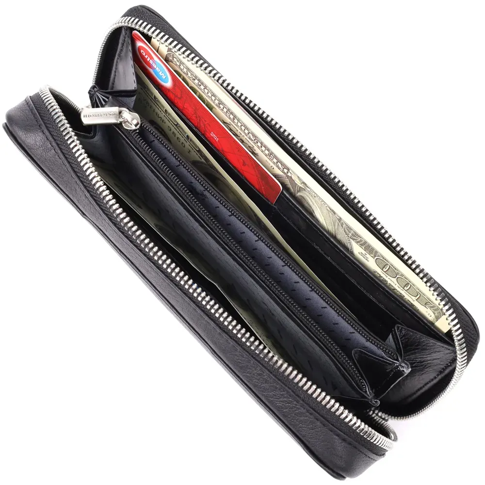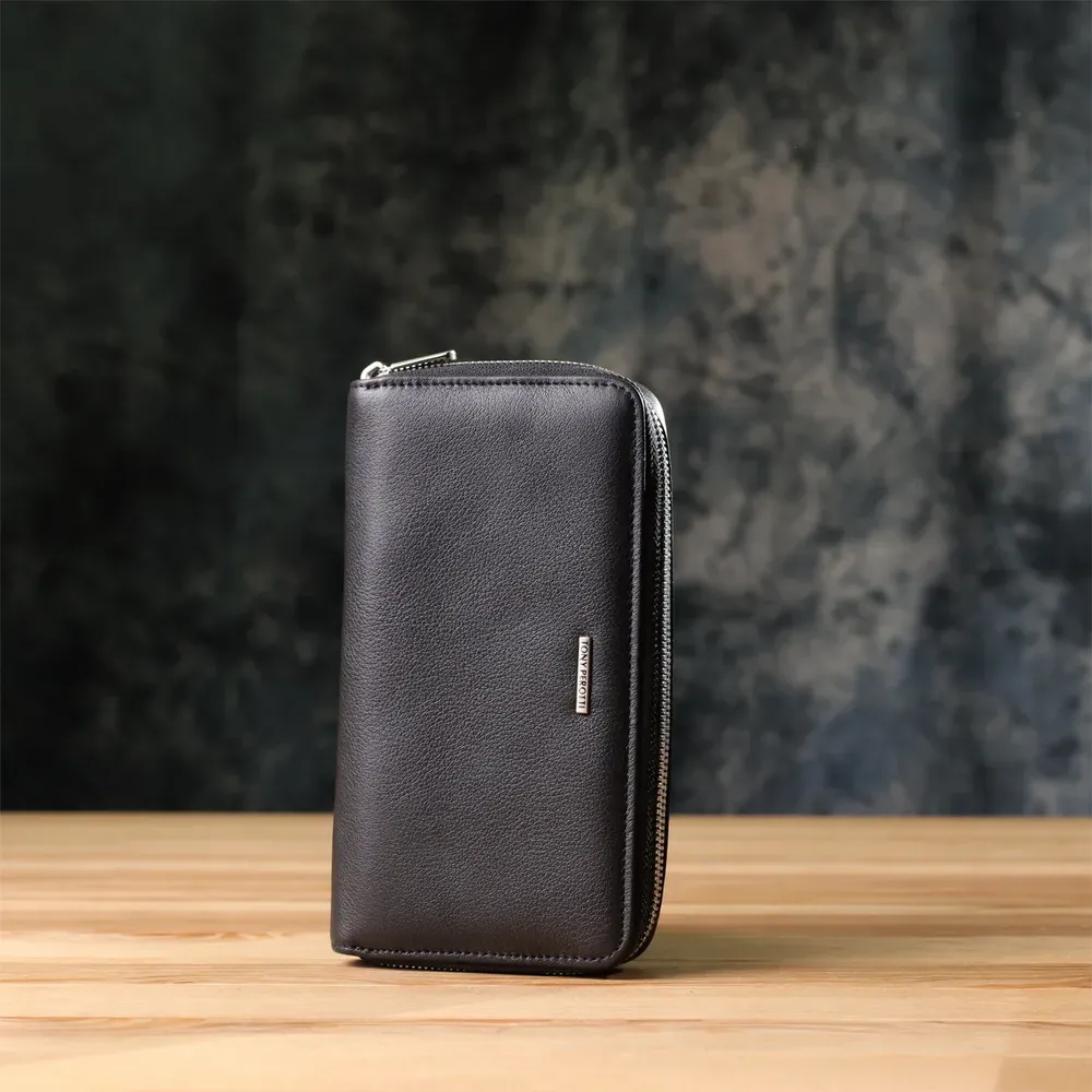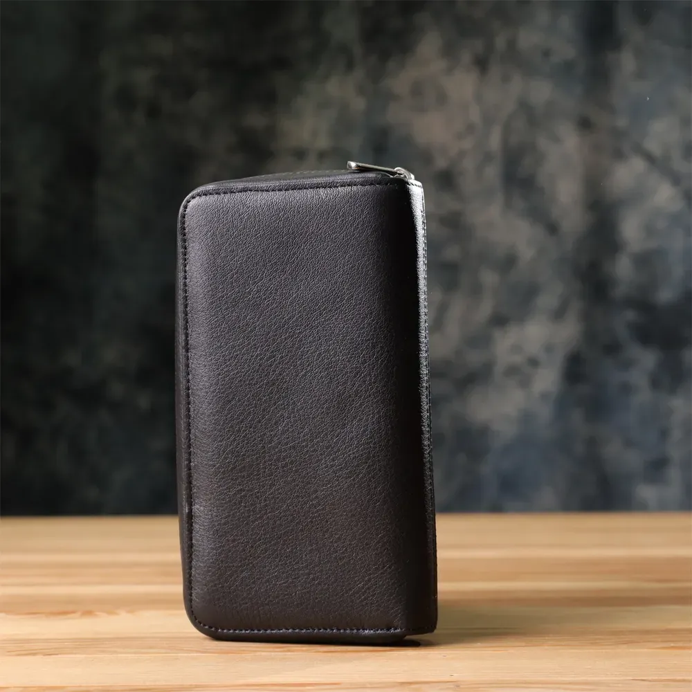 Жіночий шкіряний гаманець із натуральної зернистої шкіри чорного кольору – стильний та практичний аксесуар на кожен день. Місткі відділення для купюр, монетниця, кишені та слоти для карток забезпечують зручну організацію. Лаконічний дизайн робить модель універсальною, а якісні матеріали гарантують довговічність та елегантний зовнішній вигляд.