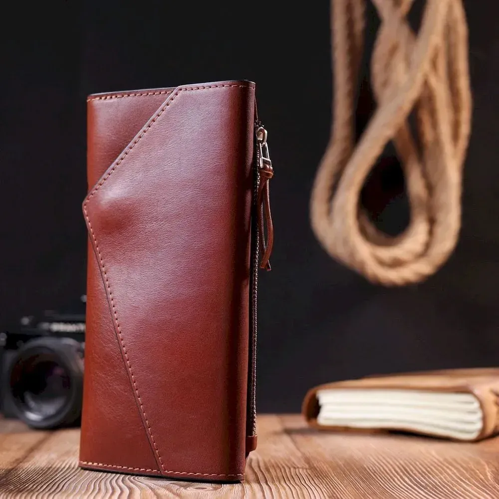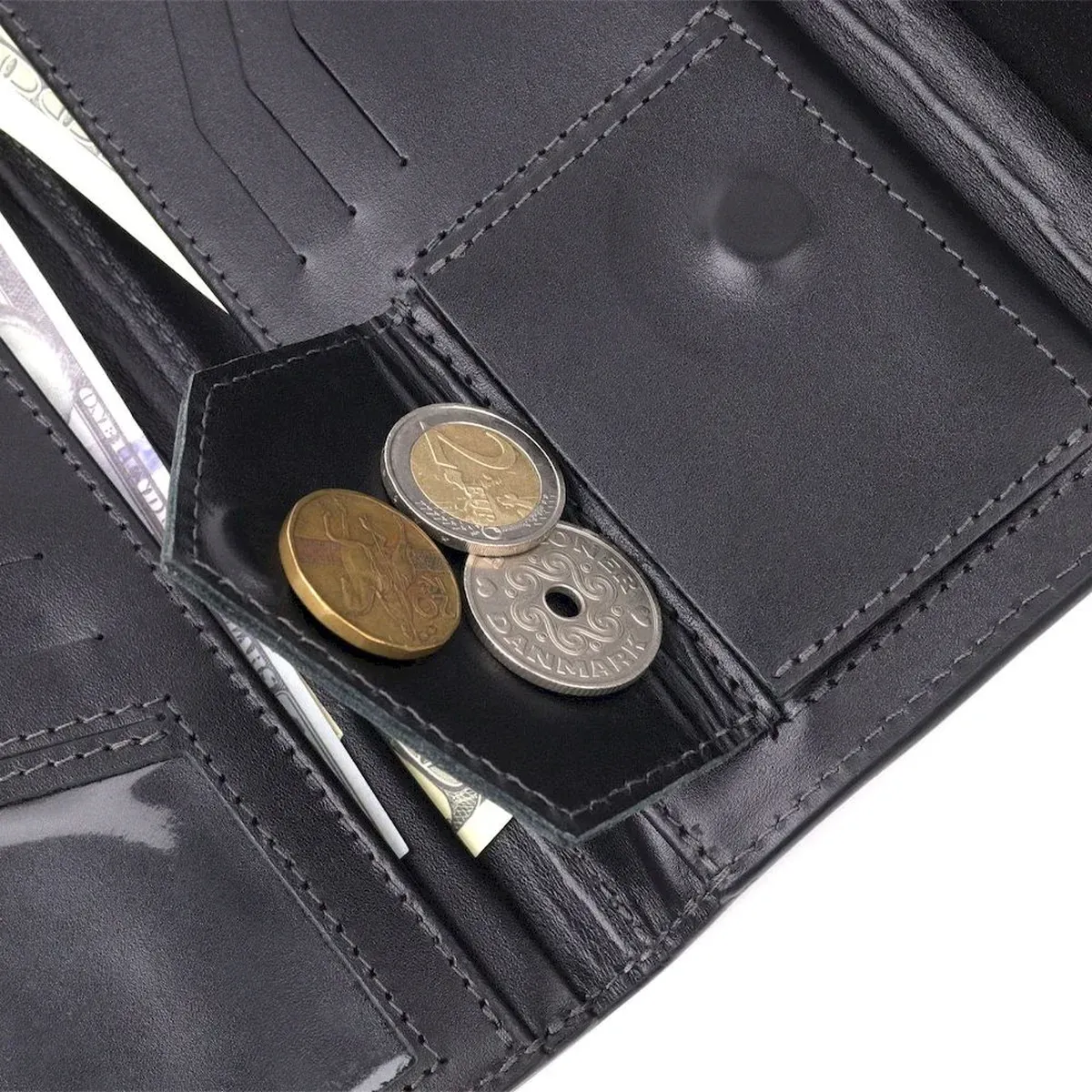Красиве та багатофункціональне портмоне у глянсовій дорогі шкірі італійського виробництва. Виріб має продуманий до дрібниць дизайн та якісну фурнітуру, дуже практичний. У портмоне містяться купюри у розгорнутому вигляді. Доповнено аксесуар також осередками для кредиток, в аксесуарі зібрано весь необхідний функціонал для сучасного клієнта. Виріб зручно лежить у руці. Глянцева шкіра відмінно і довго носиться і не вимагає особливого догляду. Відмінний подарунок для ваших близьких.