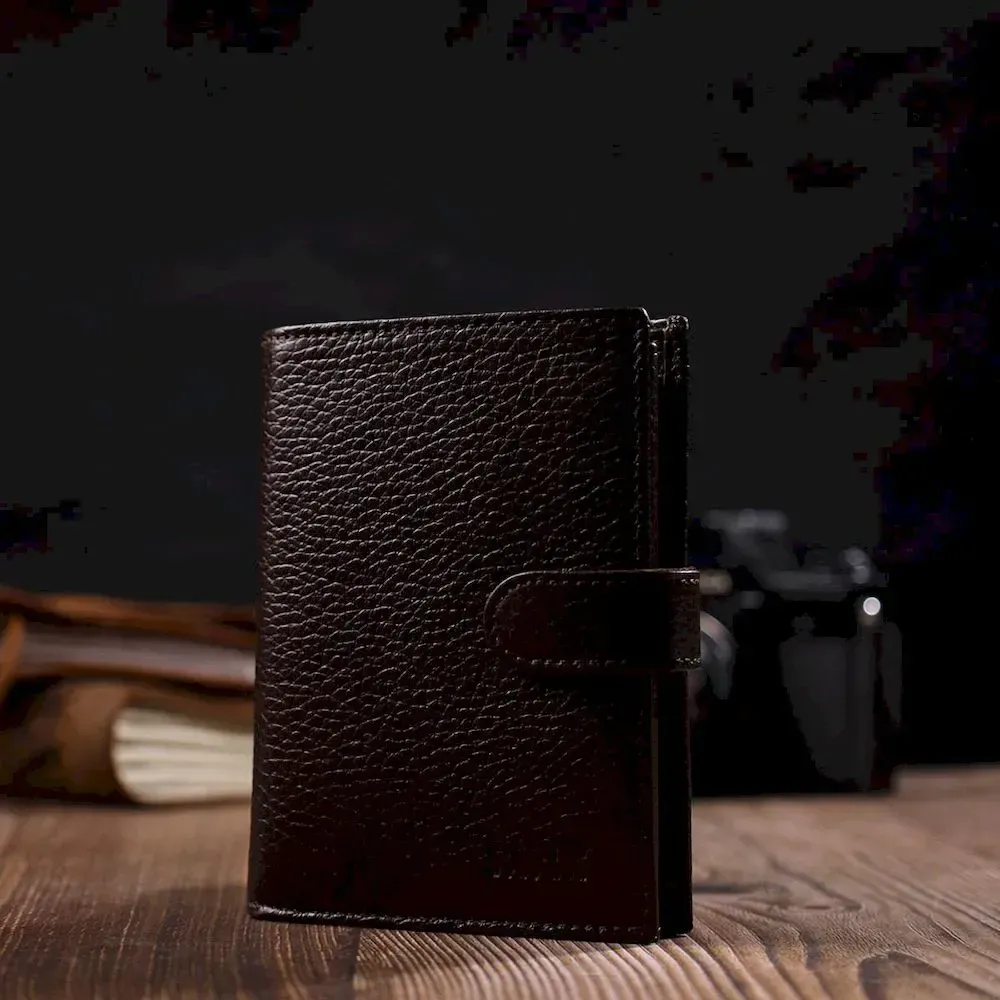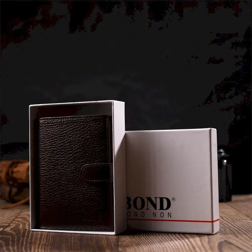 Практичний портмоне для чоловіків з натуральної зернистої шкіри BOND 22056 Коричневий
