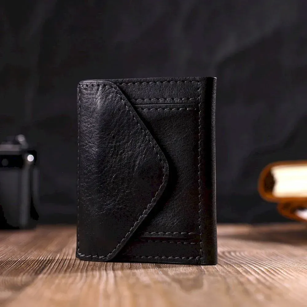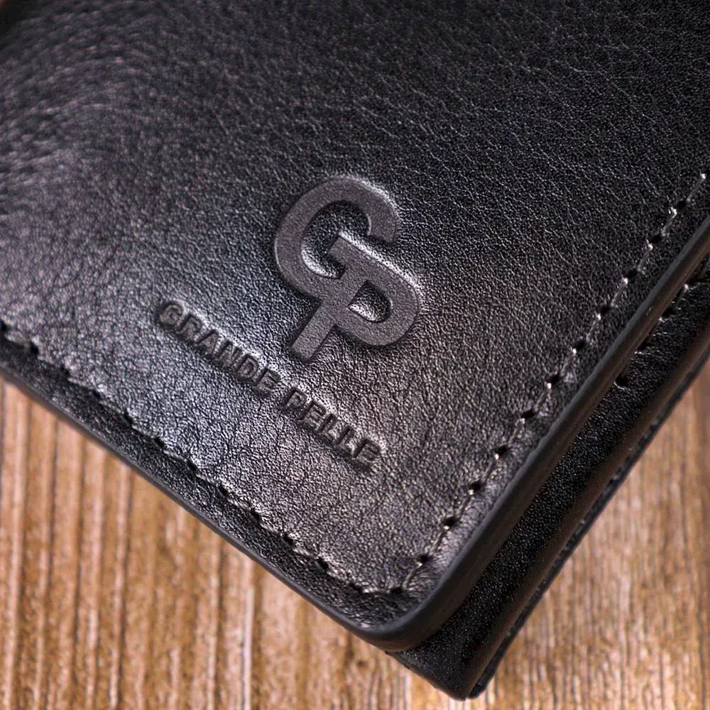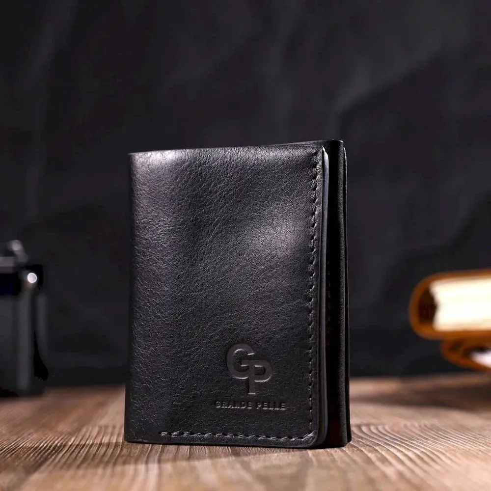 Практичний портмоне унісекс у три складання GRANDE PELLE 16789 Чорний