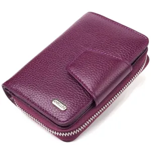 Практичний вертикальний портмоне для жінок з монетницею на блискавці з натуральної шкіри флотар CANPELLINI 21601 Фіолетовий