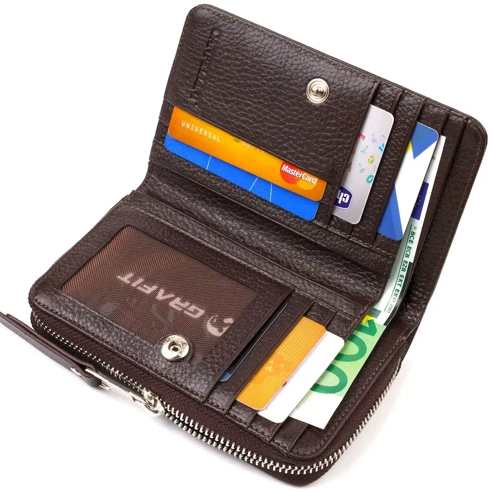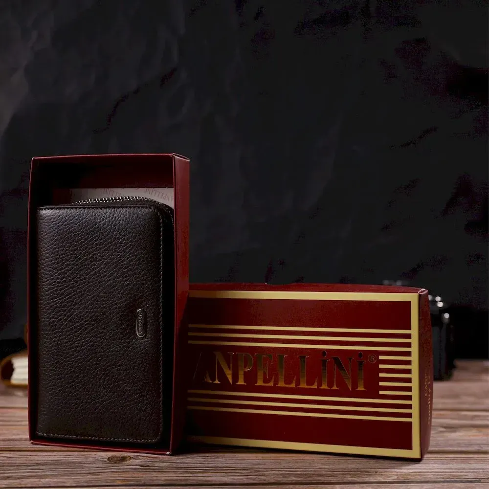 Практичне жіноче портмоне середнього розміру з натуральної шкіри CANPELLINI 21910 Коричневе