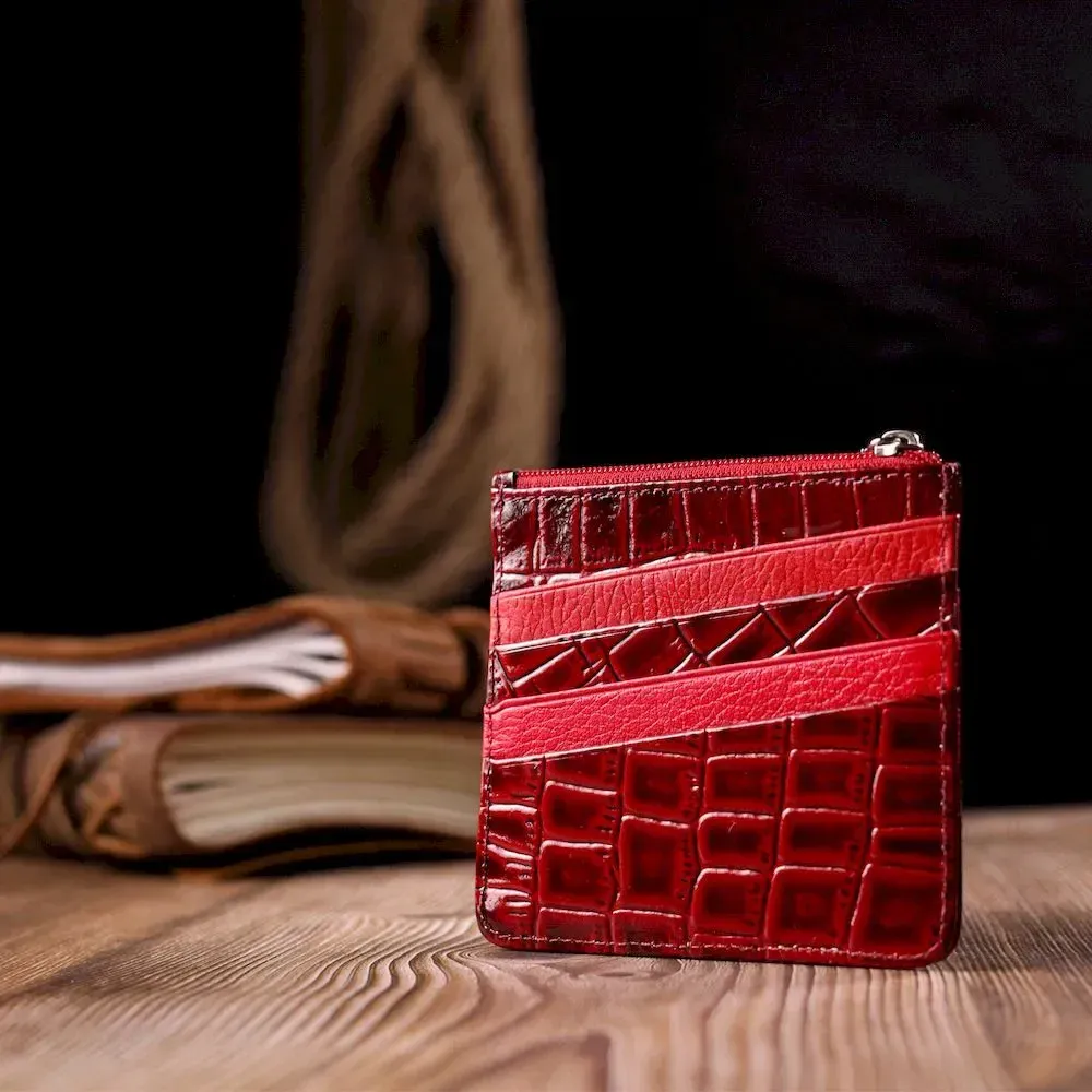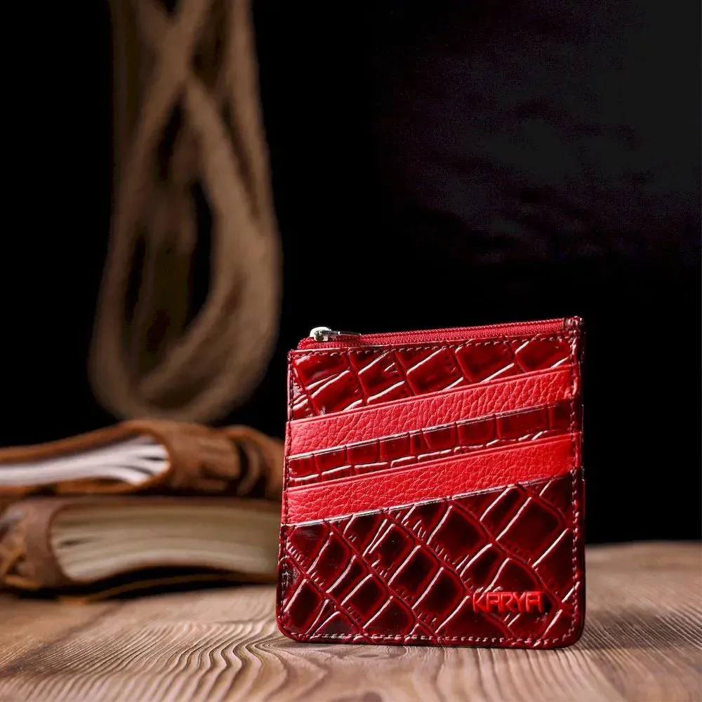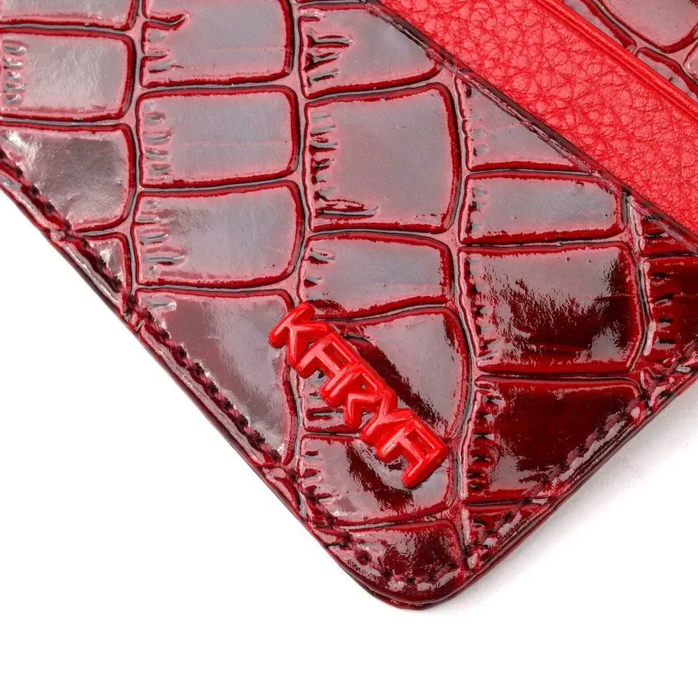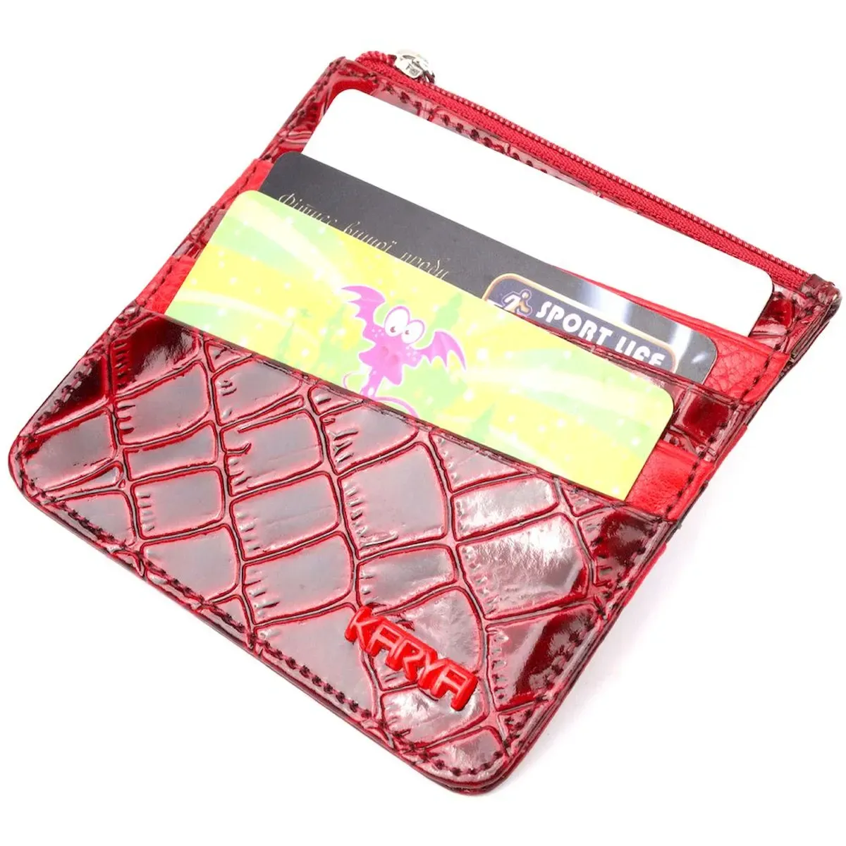 Практичний картхолдер із натуральної шкіри з тисненням під крокодила KARYA 21207 Червоний