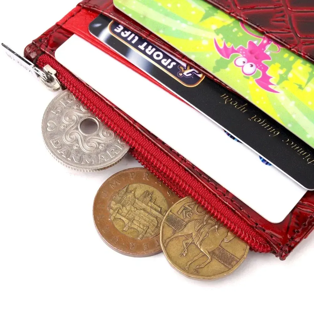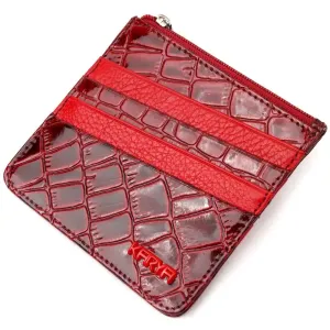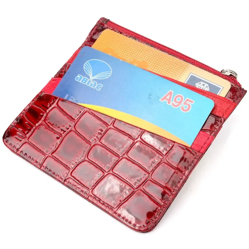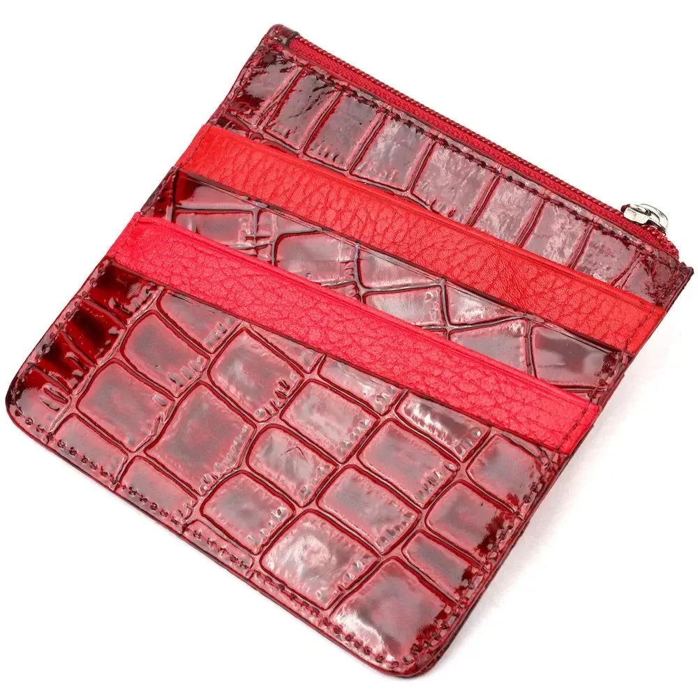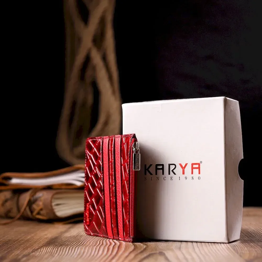 Практичний картхолдер із натуральної шкіри з тисненням під крокодила KARYA 21207 Червоний