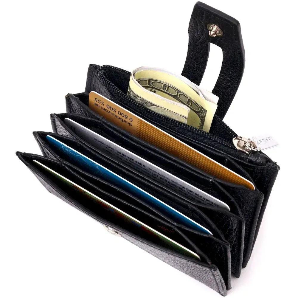 Практичний картхолдер із натуральної зернистої шкіри KARYA 21332 Чорний