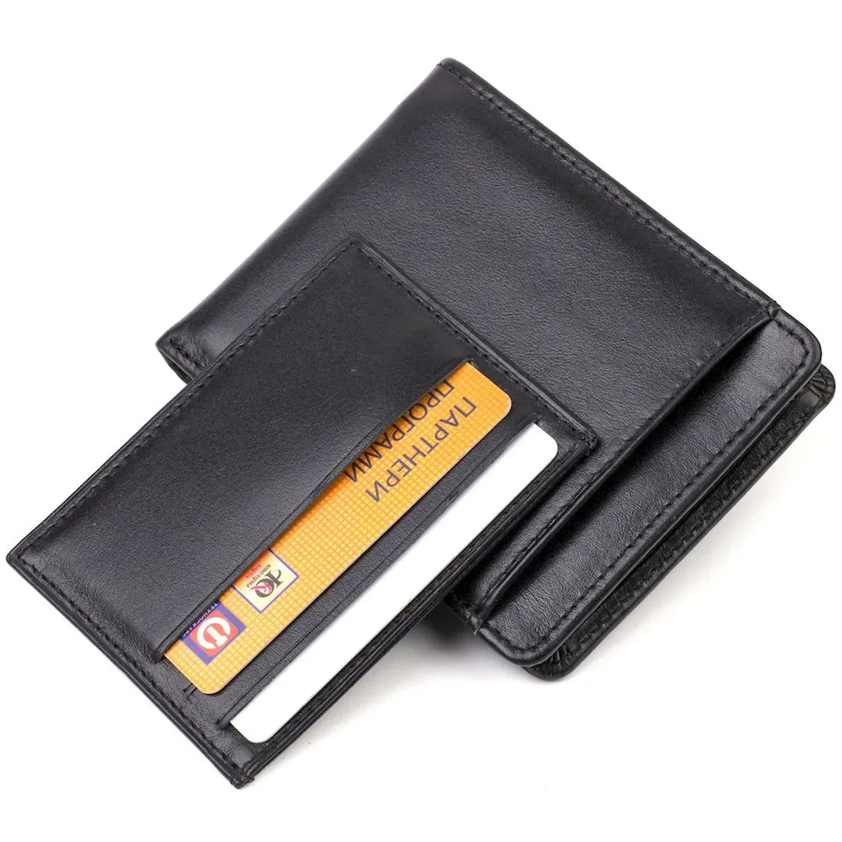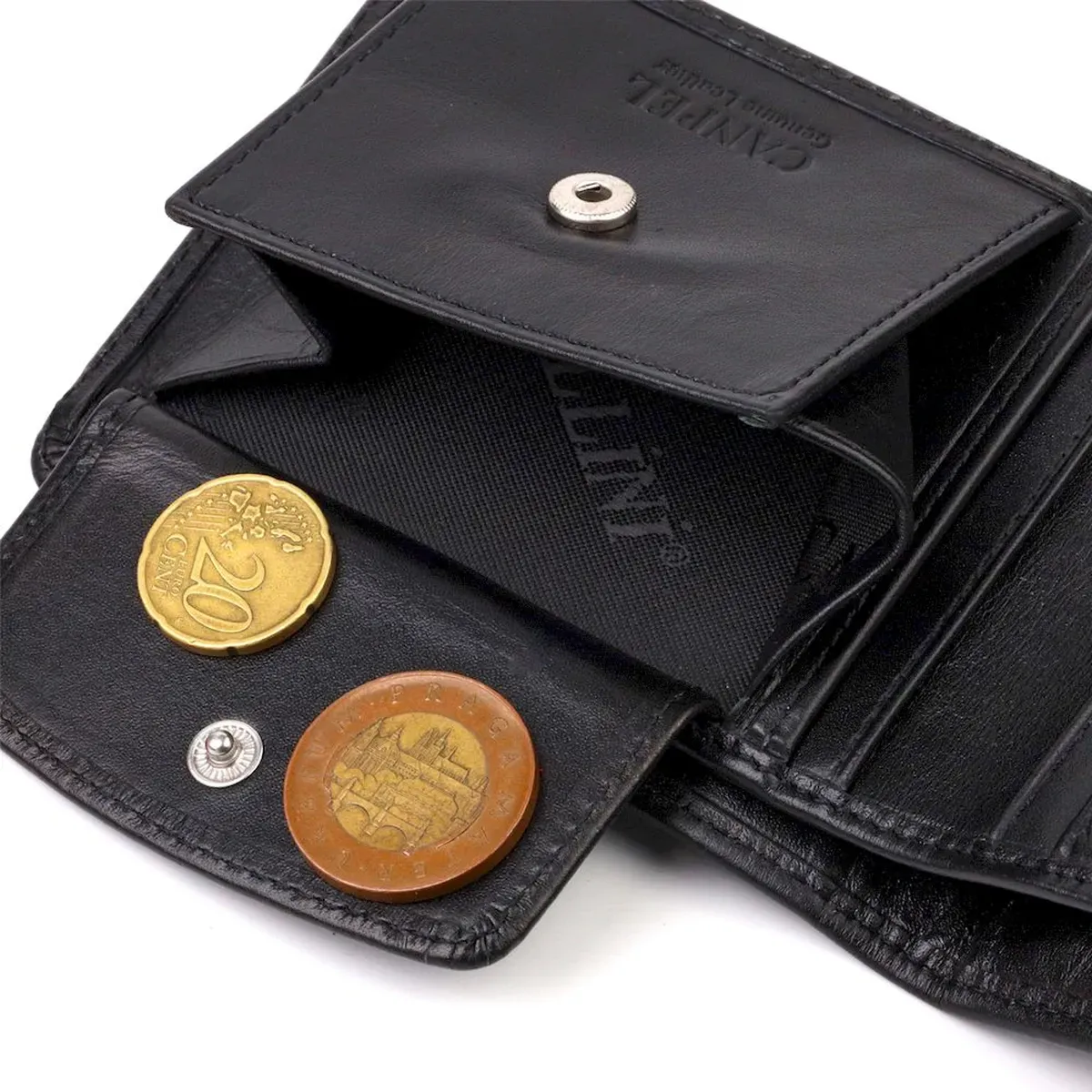 Практичний компактний гаманець із вкладишем для посвідчення для чоловіків з натуральної гладкої шкіри CANPELLINI 21876 Чорний