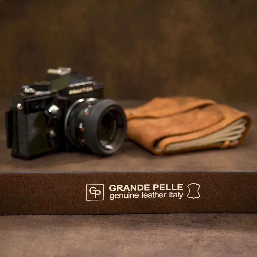 Практичний чоловічий шкіряний ремінь GRANDE PELLE 11452 Темно-коричневий