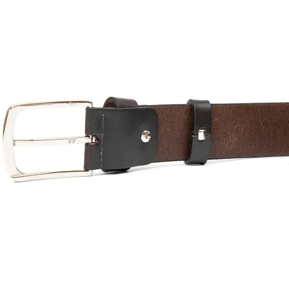 Відмінний чоловічий ремінь з високоміцної натуральної шкіри в красивому темно-коричневому кольорі, що виглядає дуже стильно та елегантно. Красива металева пряжка без надмірностей. Підійде ремінь до будь-яких штанів або джинсів.