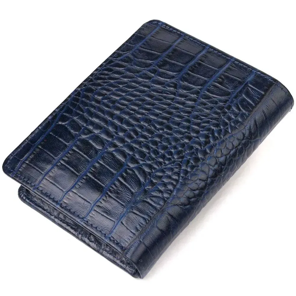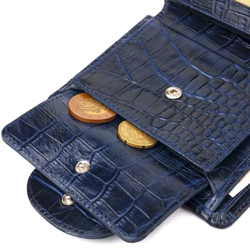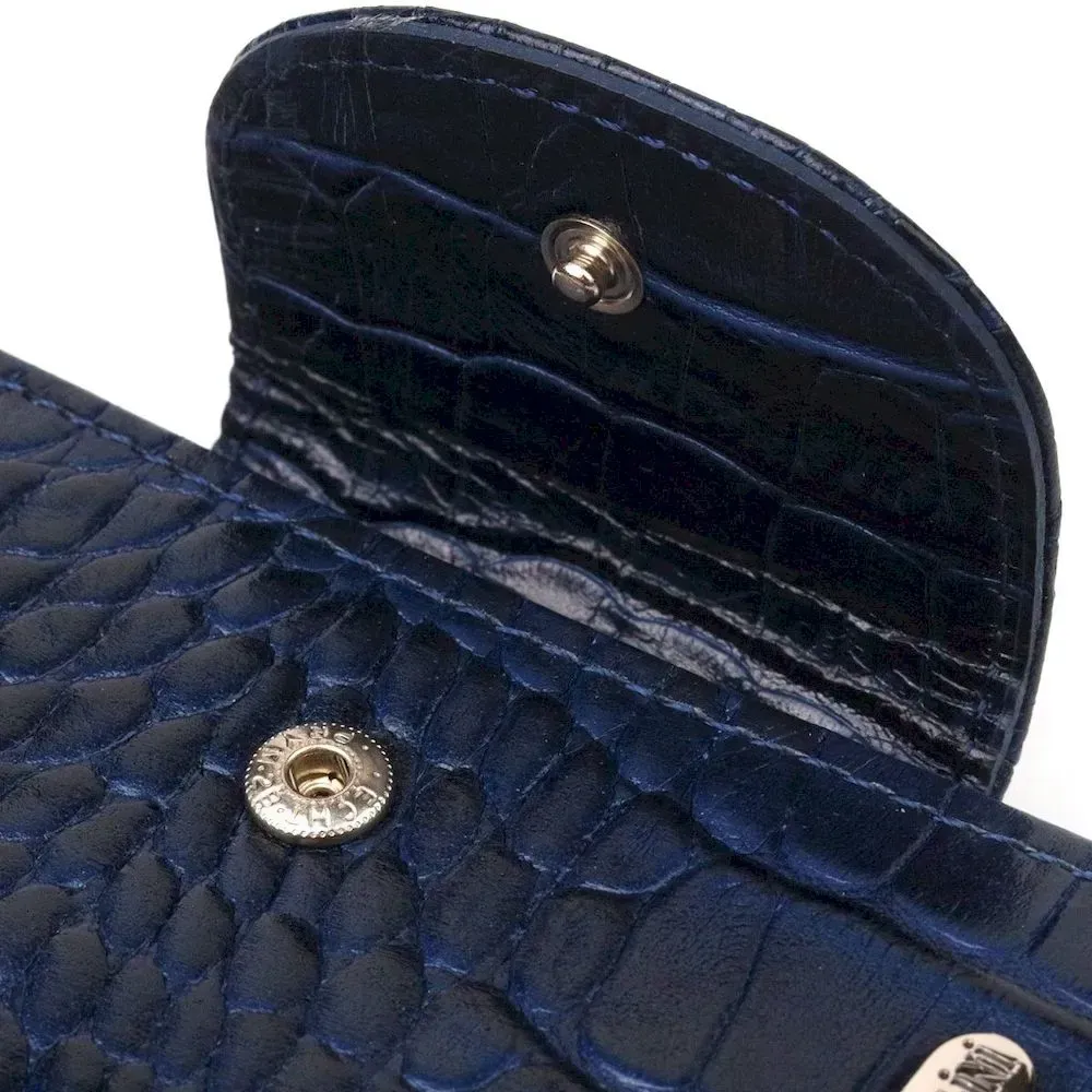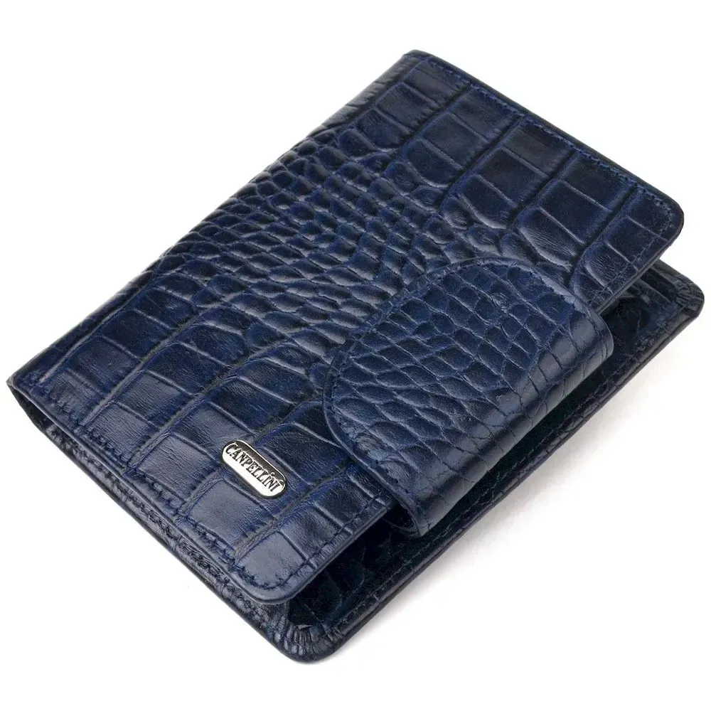 Практичний вертикальний жіночий гаманець із натуральної шкіри з тисненням під крокодила CANPELLINI 21677 Синій