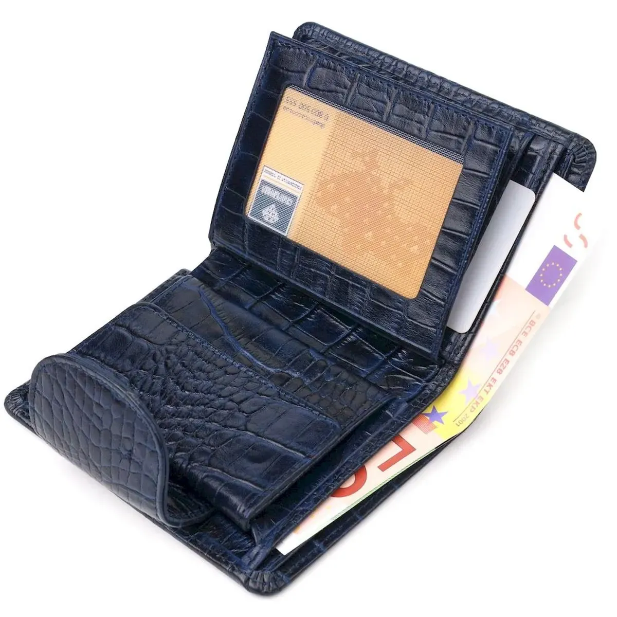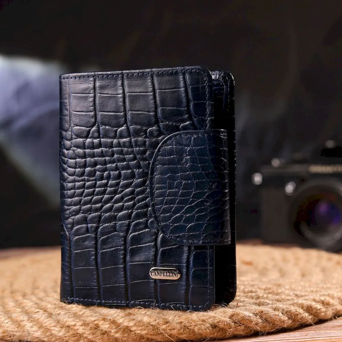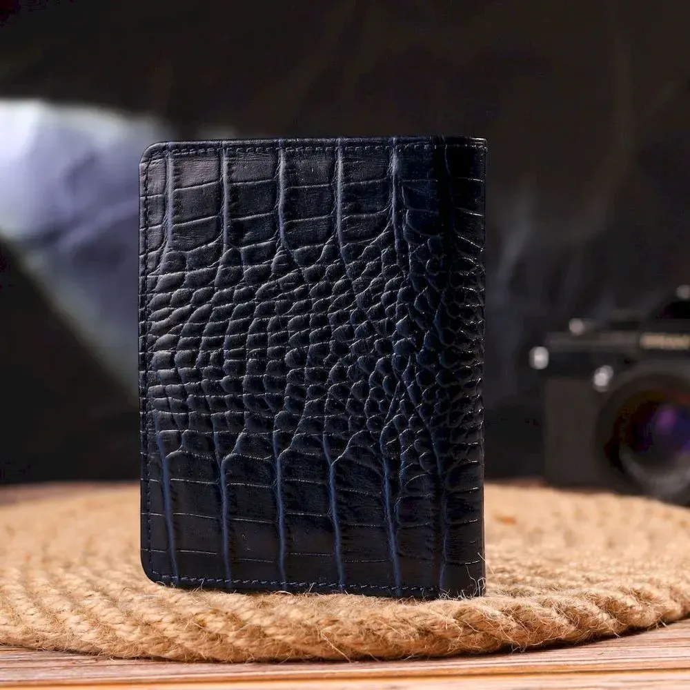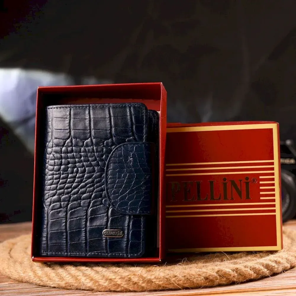 Практичний вертикальний жіночий гаманець із натуральної шкіри з тисненням під крокодила CANPELLINI 21677 Синій