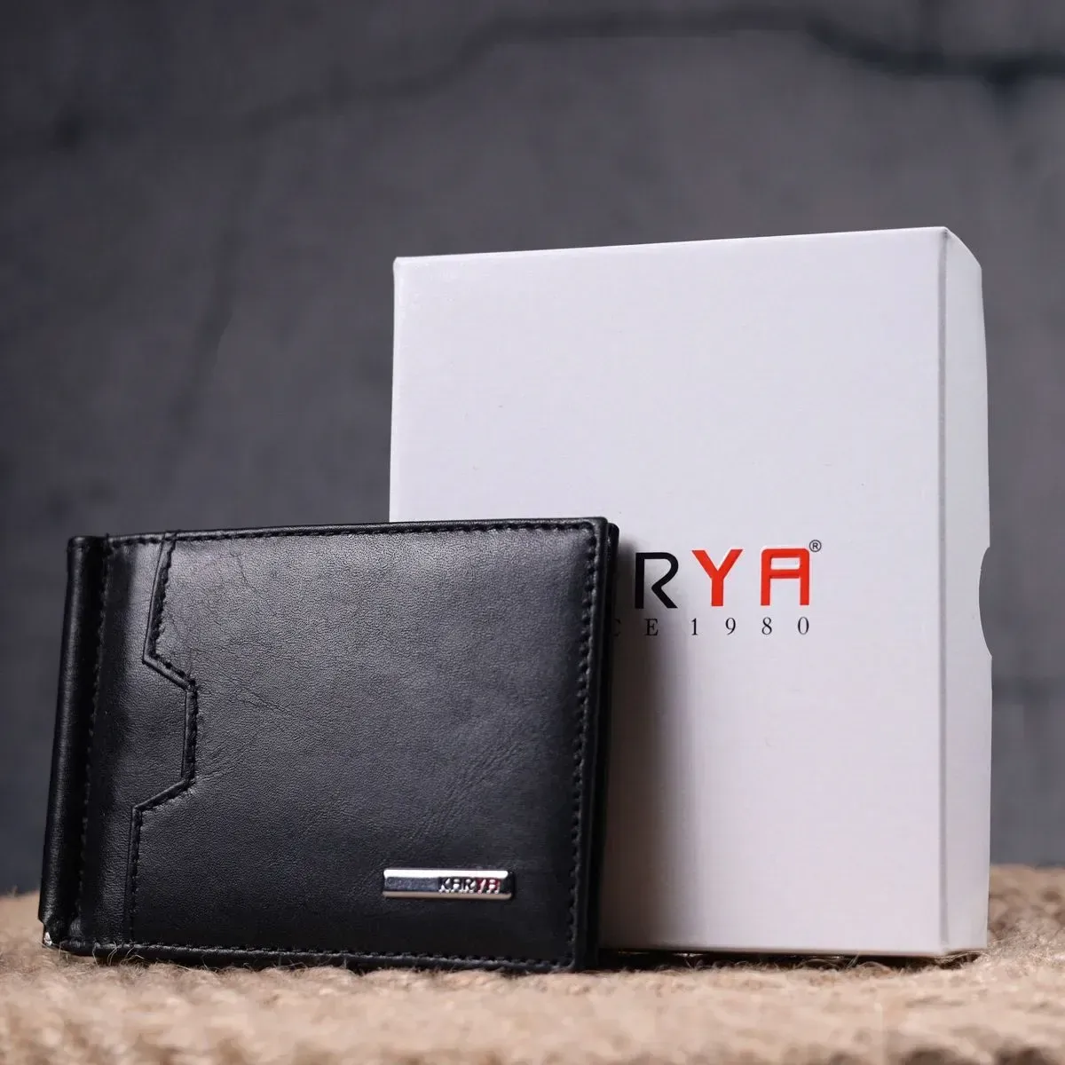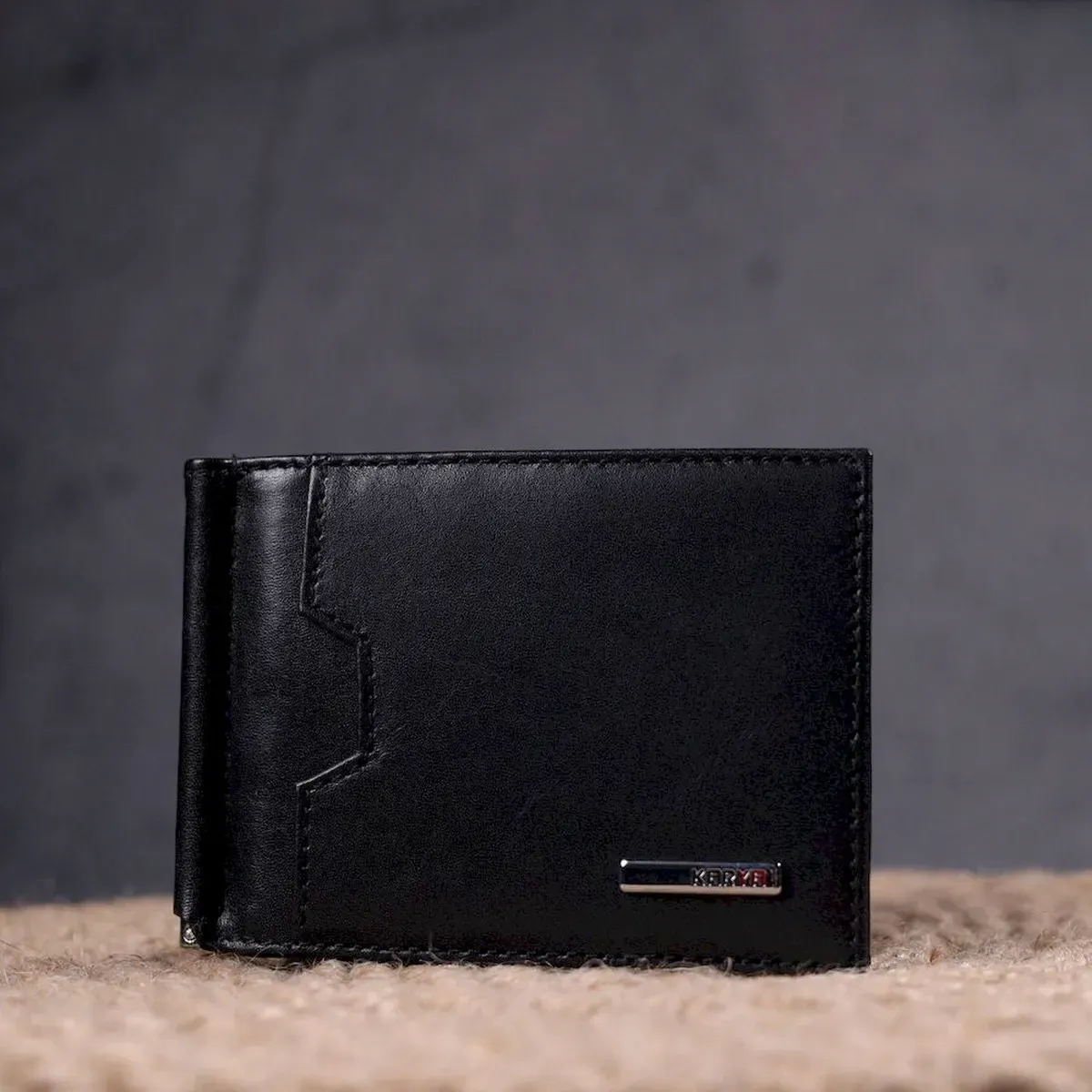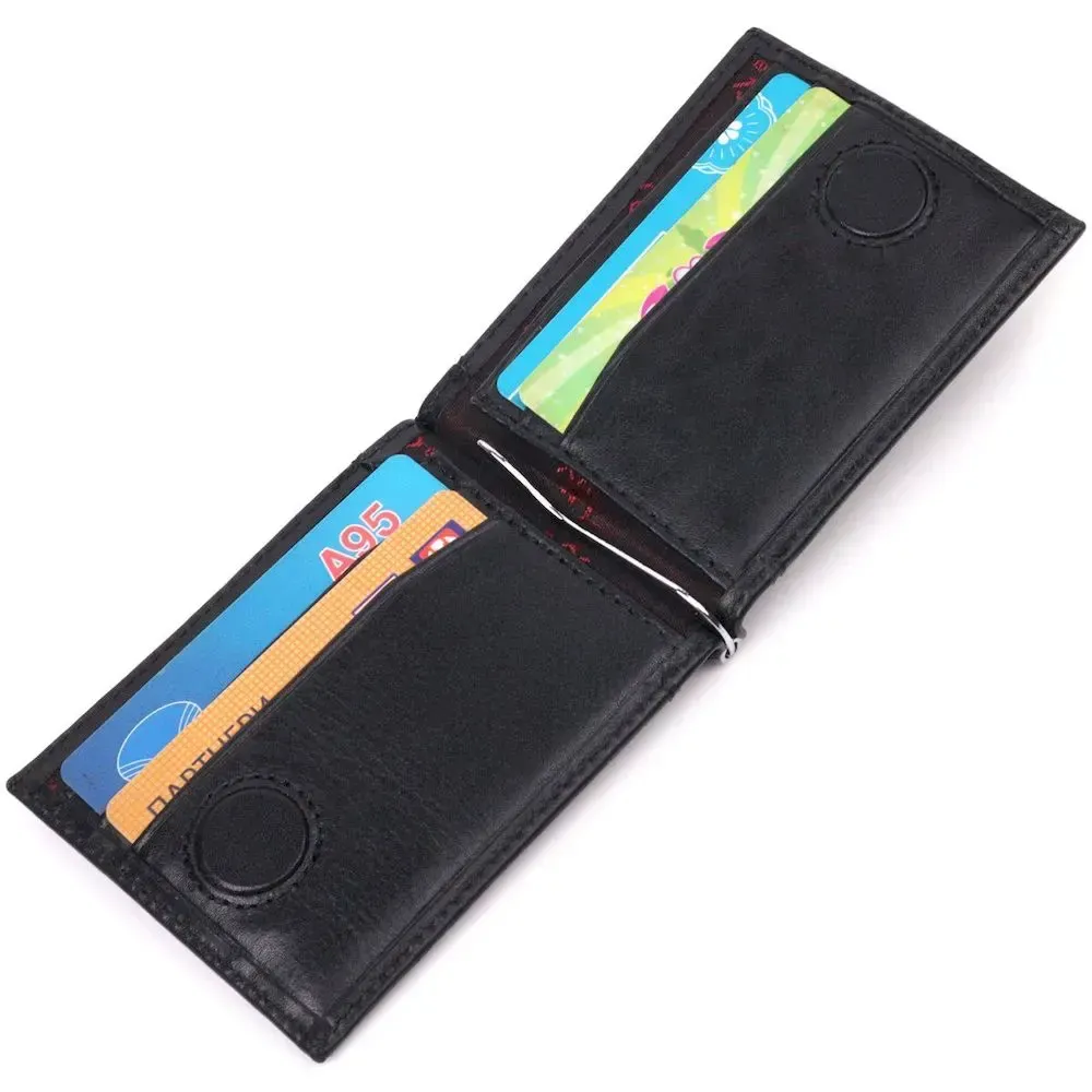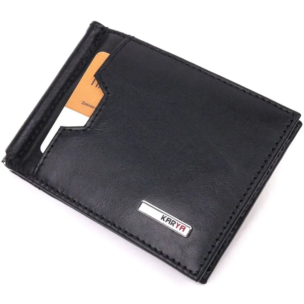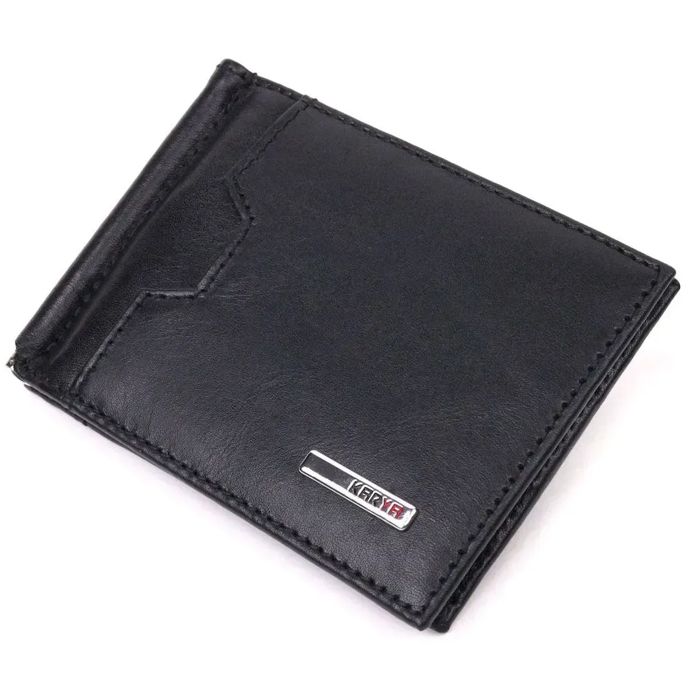 Практичний затискач для грошей з натуральної гладкої шкіри KARYA 21352 Чорний