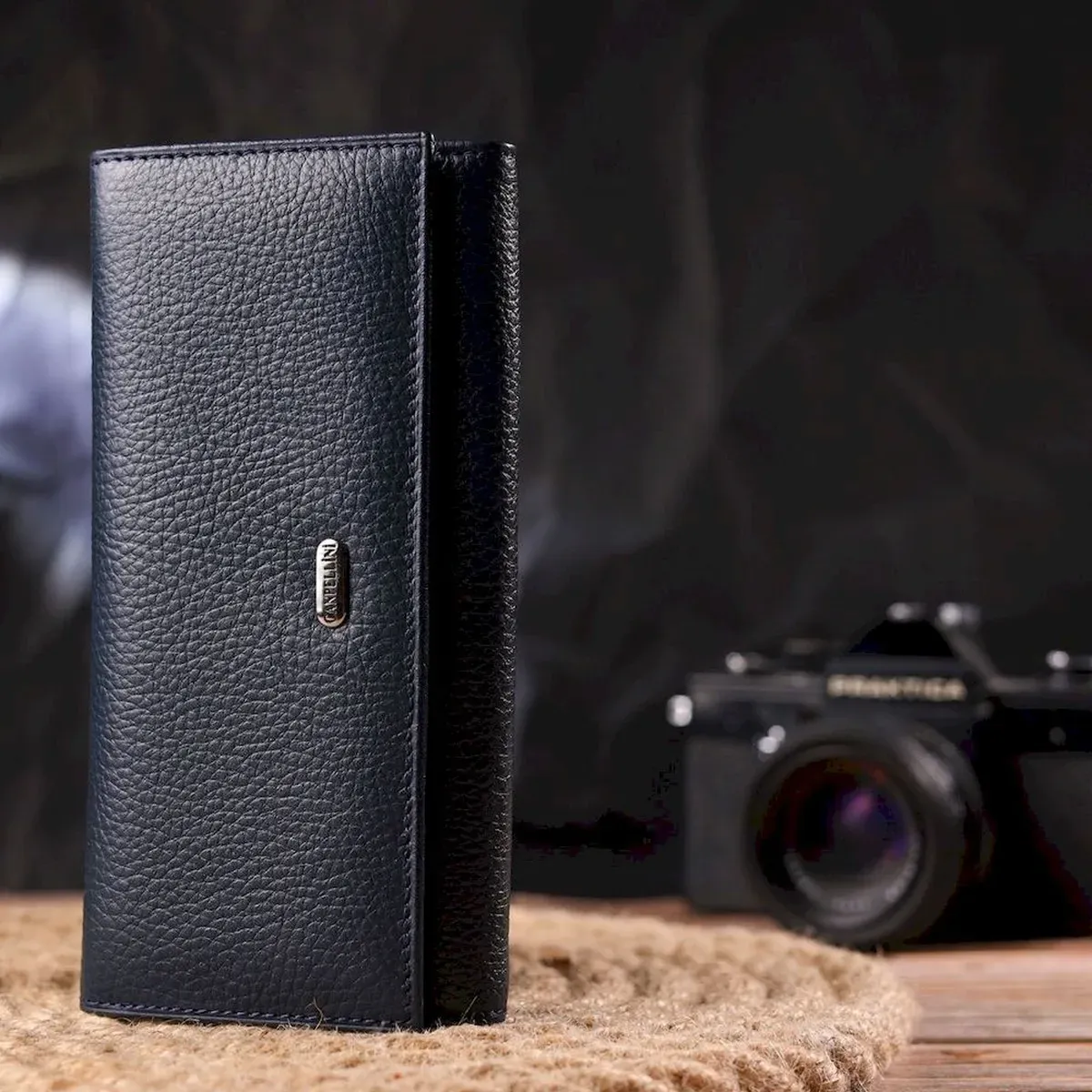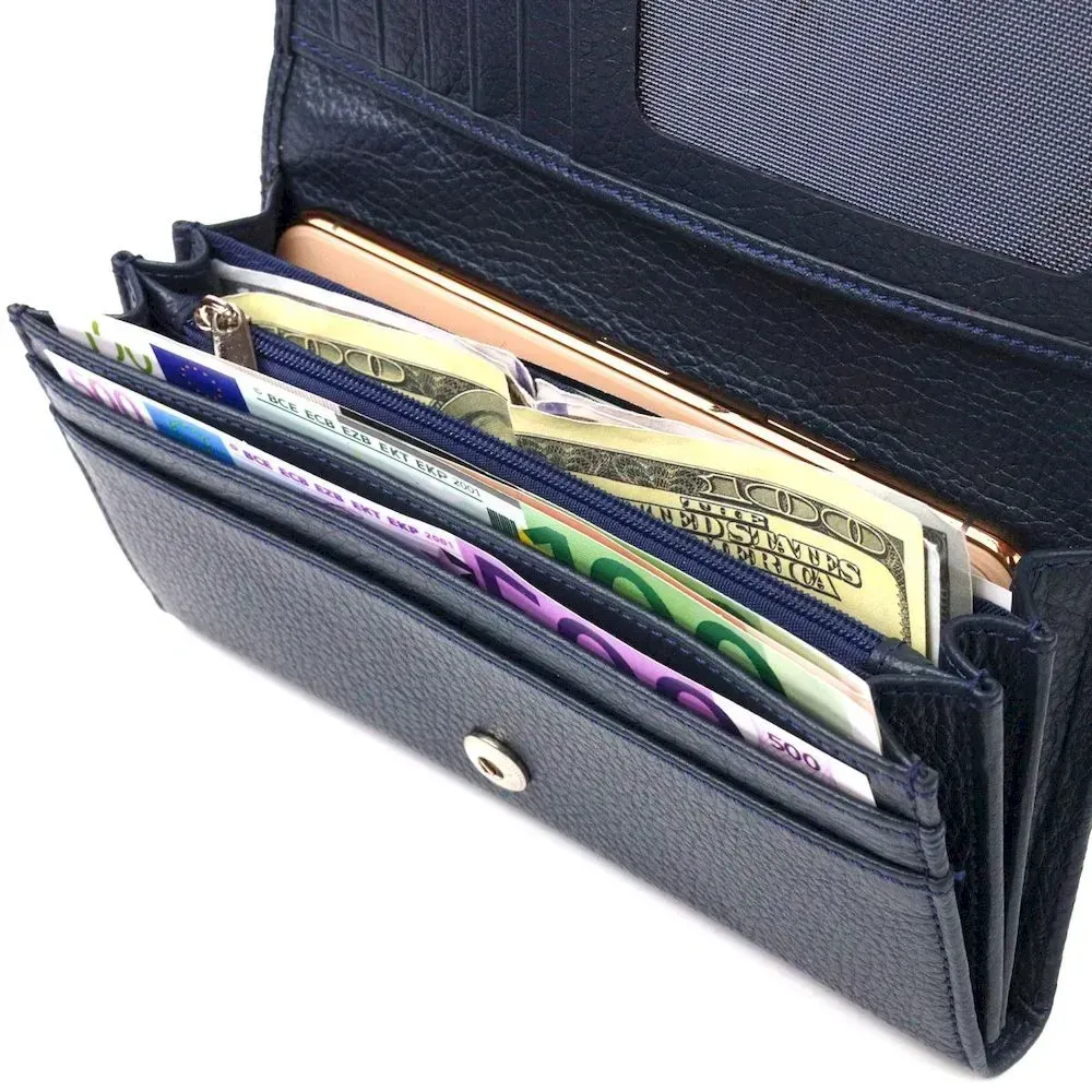 Практичний жіночий гаманець із натуральної зернистої шкіри CANPELLINI 21659 Синій
