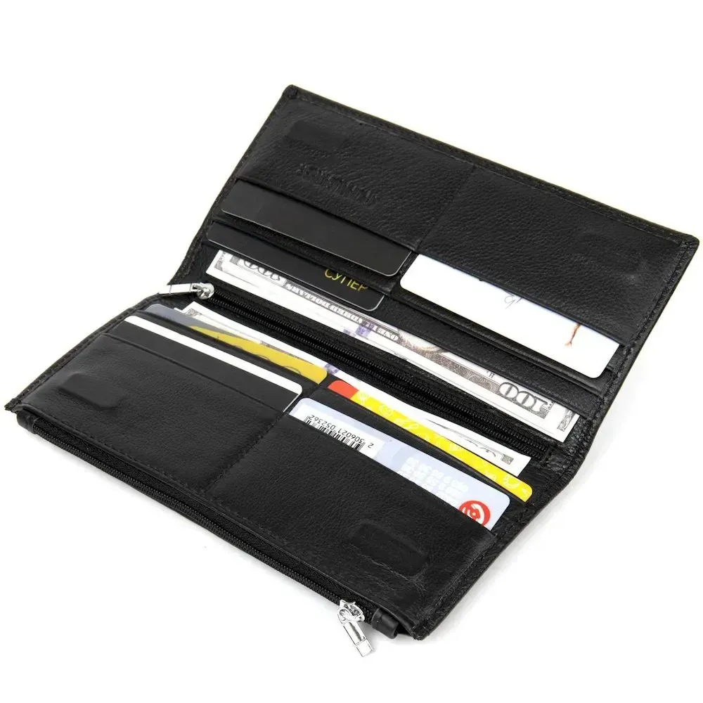 Хороший добротний жіночий гаманець на кожен день у класичному чорному кольорі. Виготовлений з м'якої та приємної на ощупь натуральної шкіри, яка має відмінні експлуатаційні характеристики. Наповнення цієї моделі порадує своєю практичністю та функціональністю. Такий гаманець стане бажаним подарунком для жінок будь-якого віку та соціального статусу.