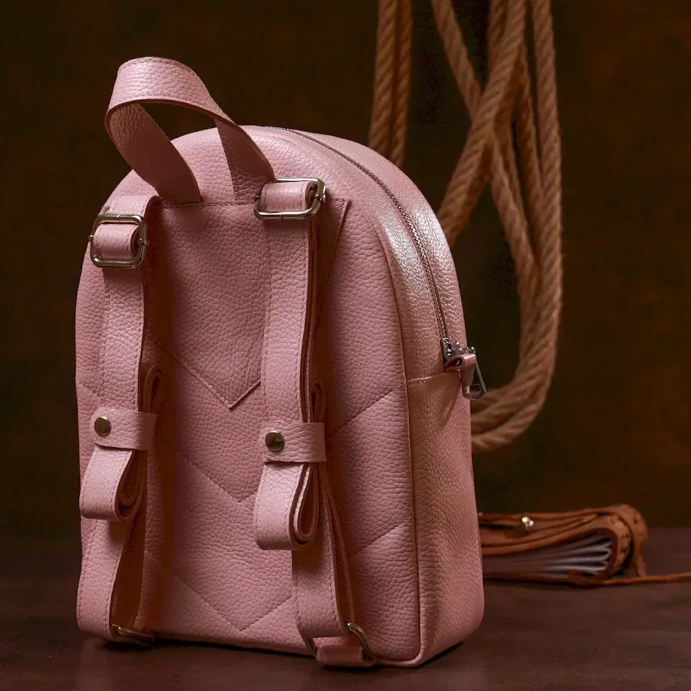Практичний жіночий рюкзак з натуральної шкіри Shvigel 16319 Рожевий