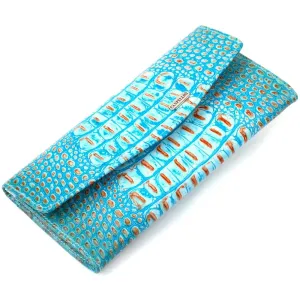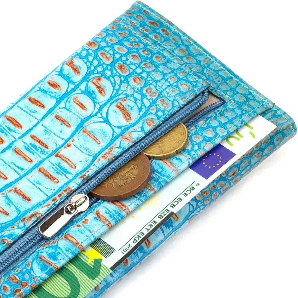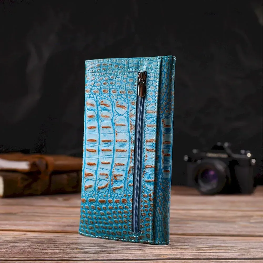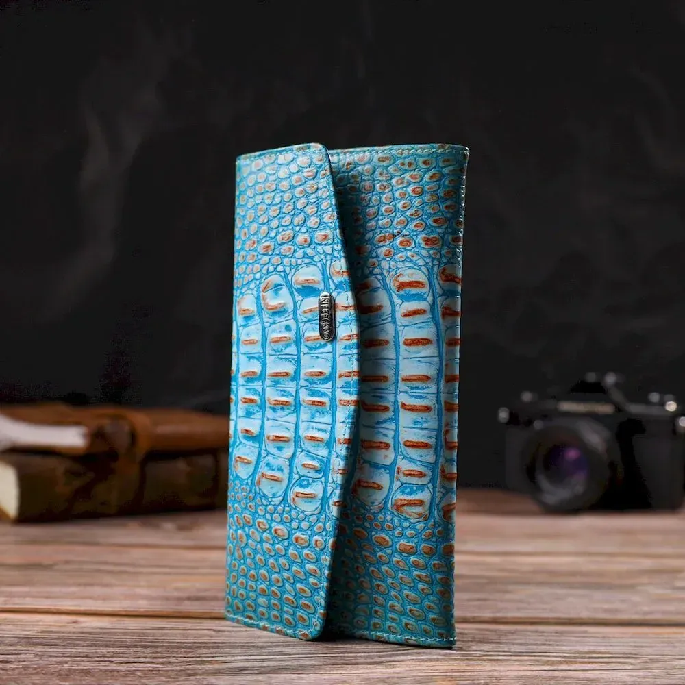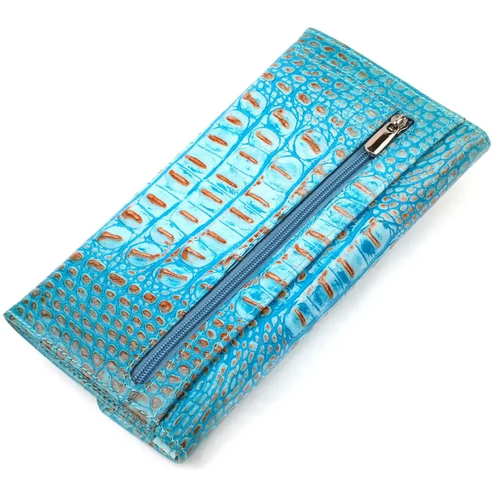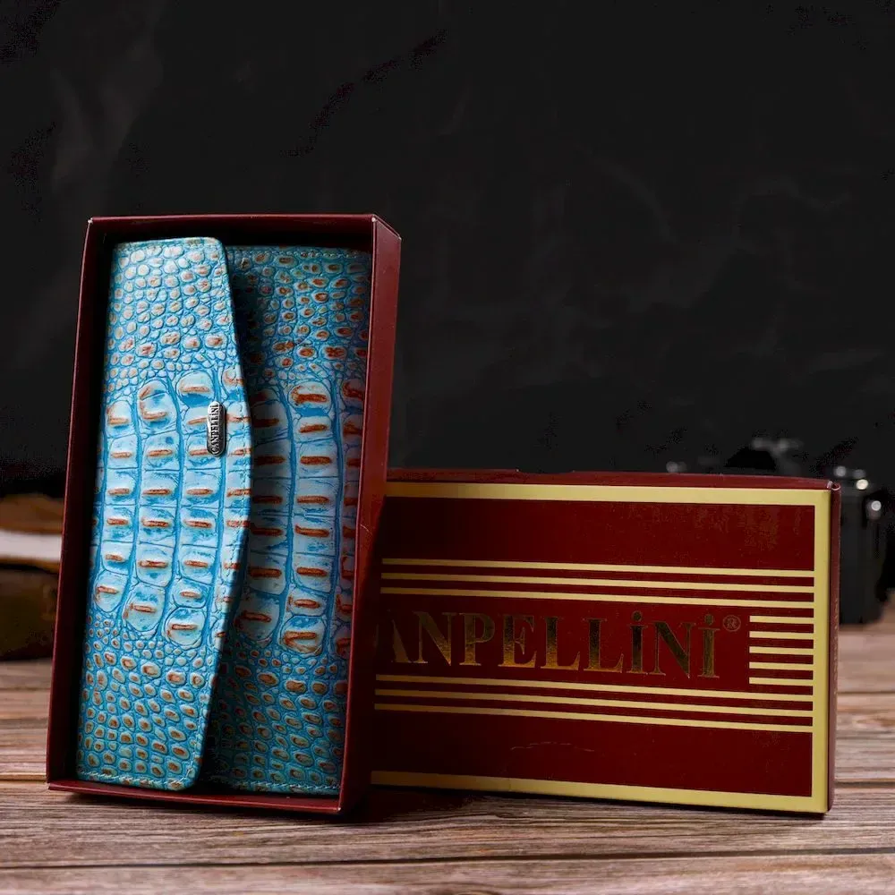 Чудове портмоне для жінок з натуральної шкіри з тисненням під крокодила CANPELLINI 21703 Синє