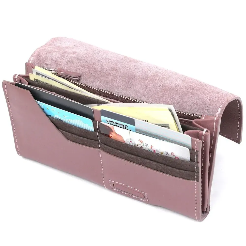 Чудовий жіночий гаманець від відомого виробника в стильному лаконічному дизайні. Виконаний аксесуар з натуральної шкіри високої якості, яка дуже м'яка та приємна на дотик. Колір виробу – рожевий з сірим відтінком, фактура – гладка. Закривається гаманець за допомогою клапана на магніті, на практиці це дуже зручно та практично.