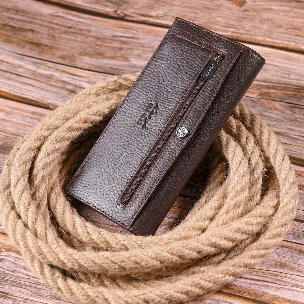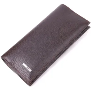 Чудовий вертикальний чоловічий гаманець із натуральної зернистої шкіри KARYA 21437 Коричневий