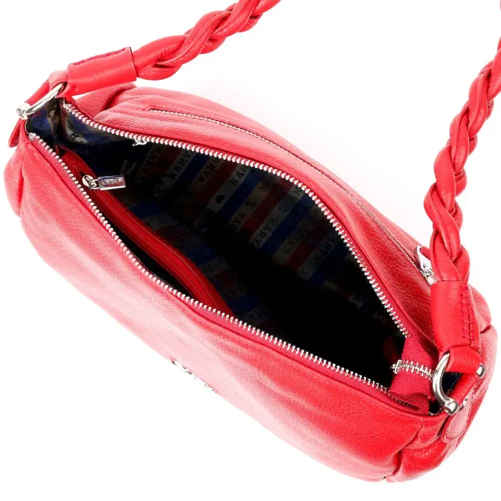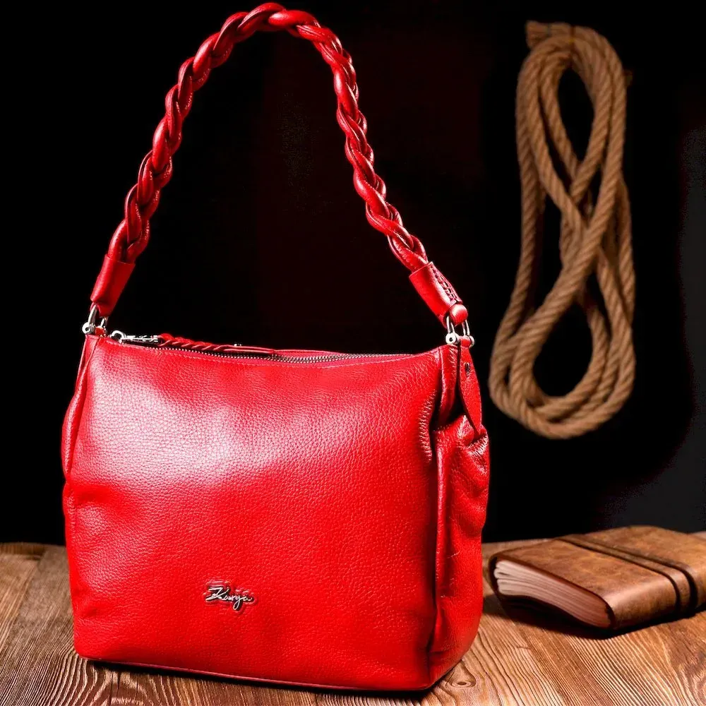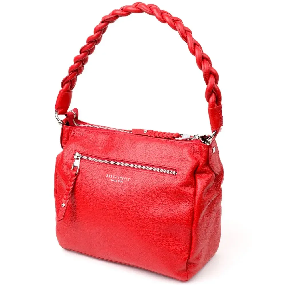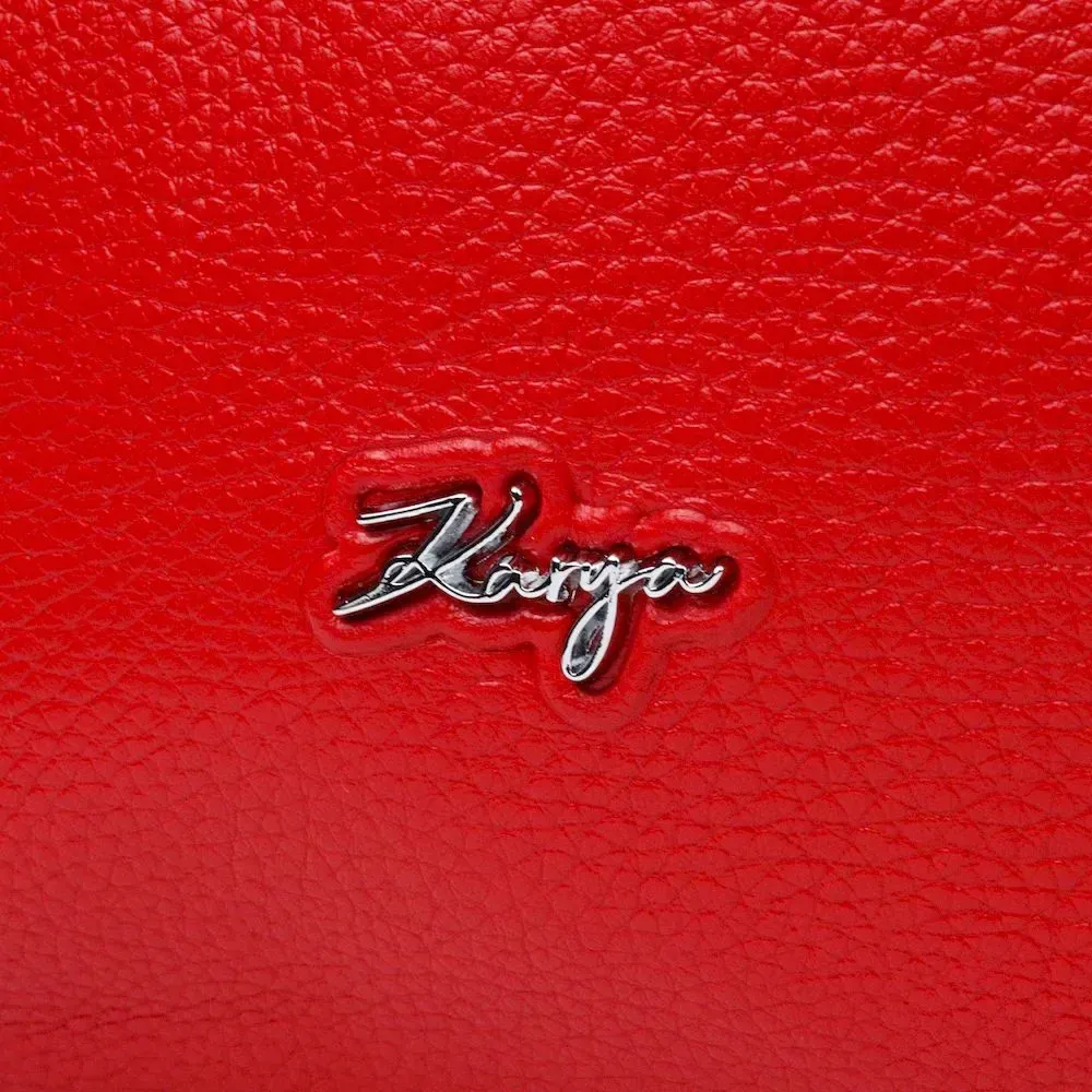 Приваблива сумка жіноча з дрібнозернистої натуральної шкіри, в червоному кольорі. Сумка функціональна та зручна в експлуатації, якісна фурнітура не тільки доповнює стильний дизайн сумки, але й захищає виріб. Виріб має міцну підкладку. Аксесуар упакований у фірмовий текстильний мішок Karya. Сумка з натуральної шкіри завжди буде чудовим подарунком будь-якій жінці.