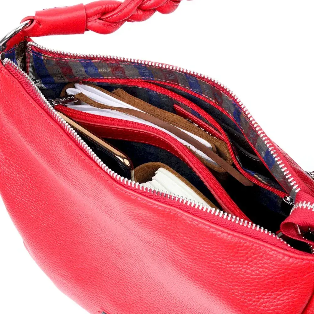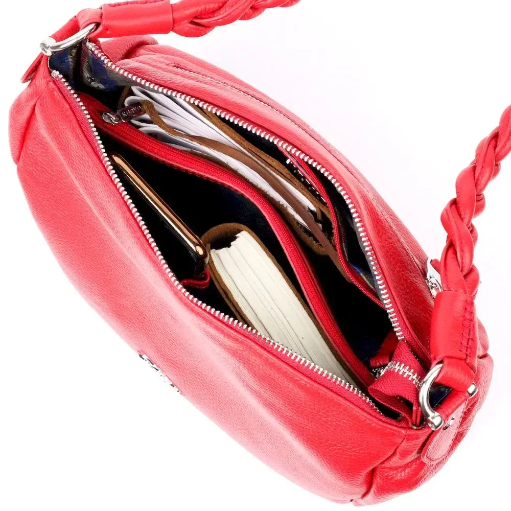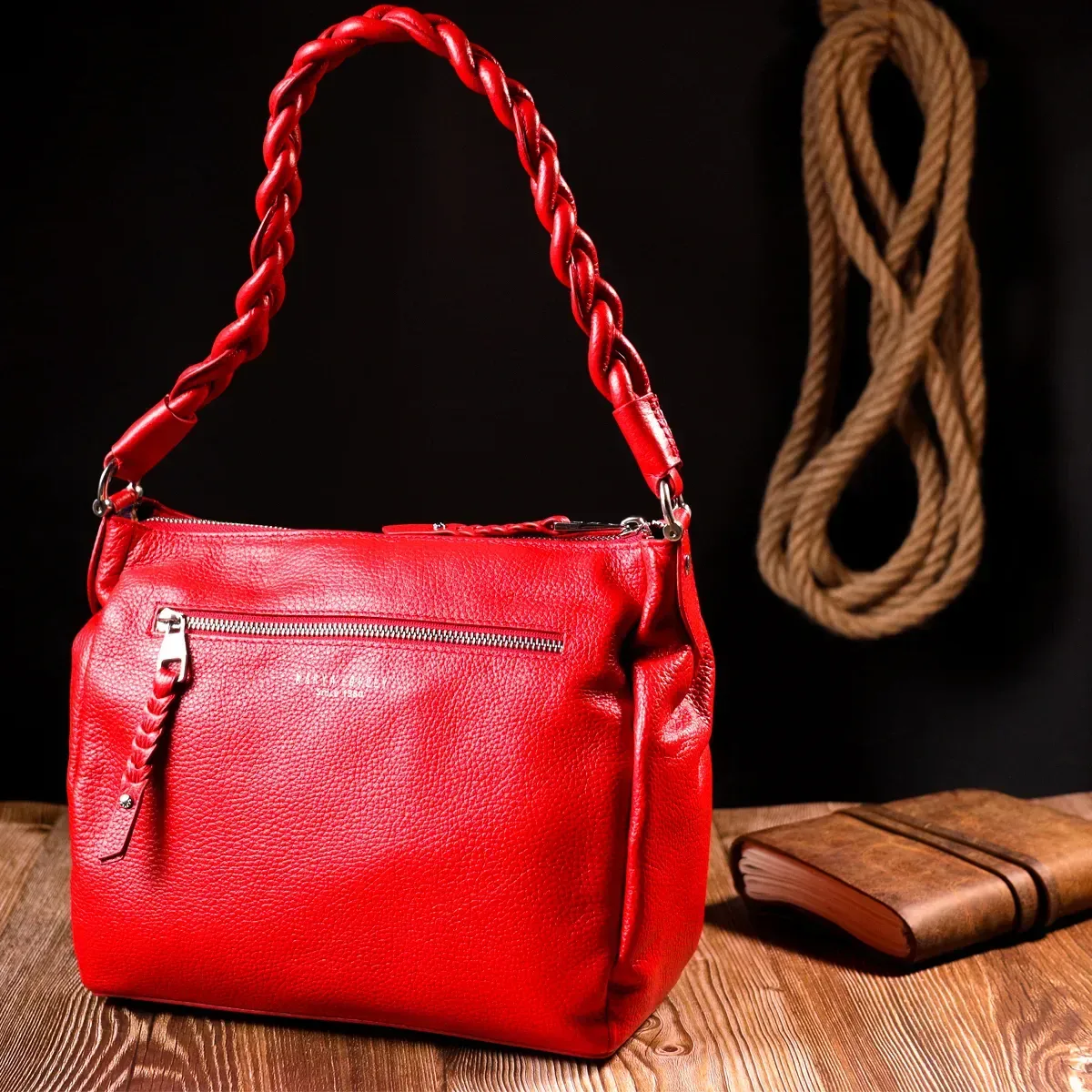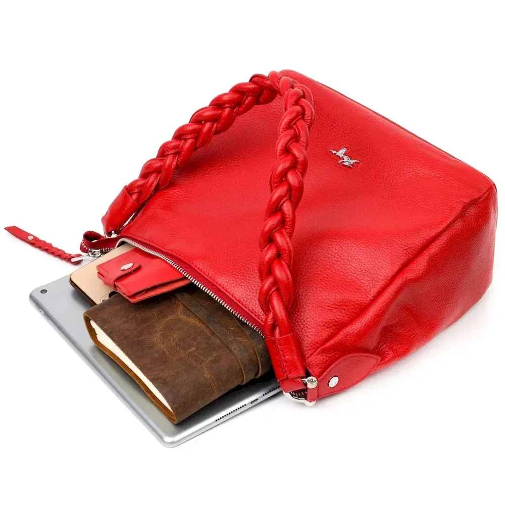 Приваблива сумка жіноча з дрібнозернистої натуральної шкіри, в червоному кольорі. Сумка функціональна та зручна в експлуатації, якісна фурнітура не тільки доповнює стильний дизайн сумки, але й захищає виріб. Виріб має міцну підкладку. Аксесуар упакований у фірмовий текстильний мішок Karya. Сумка з натуральної шкіри завжди буде чудовим подарунком будь-якій жінці.