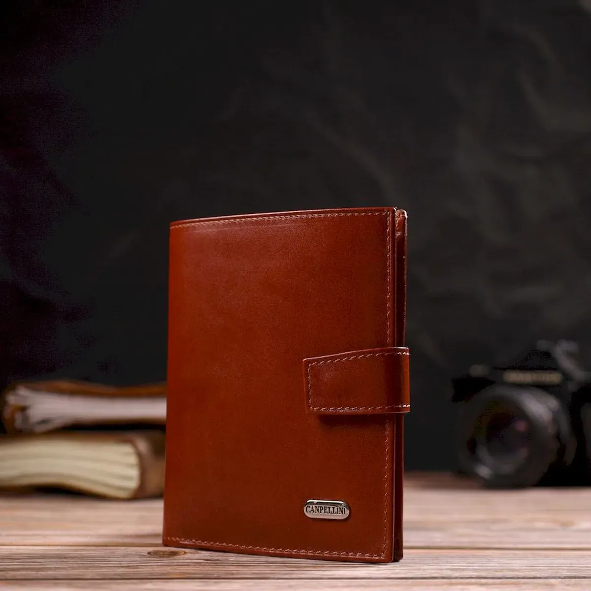 Привабливий вертикальний чоловічий гаманець середнього розміру з натуральної гладкої шкіри CANPELLINI 21858 Коричневий