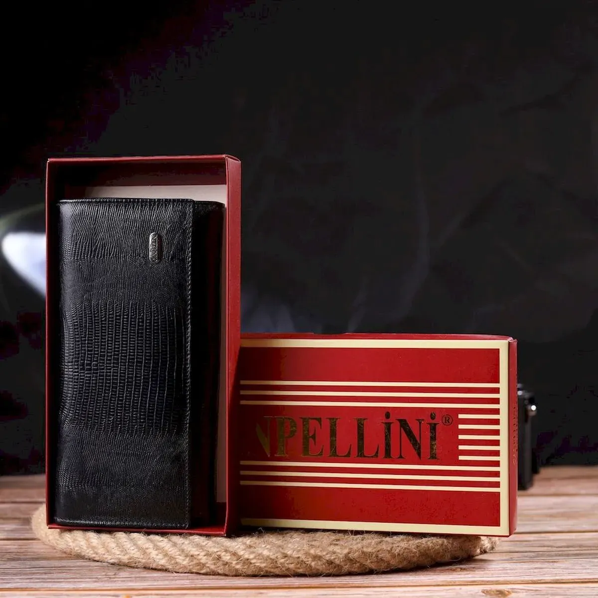 Привабливий жіночий гаманець із монетницею з натуральної фактурної шкіри CANPELLINI 21527 Чорний