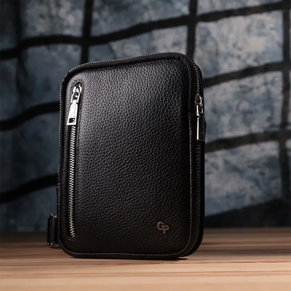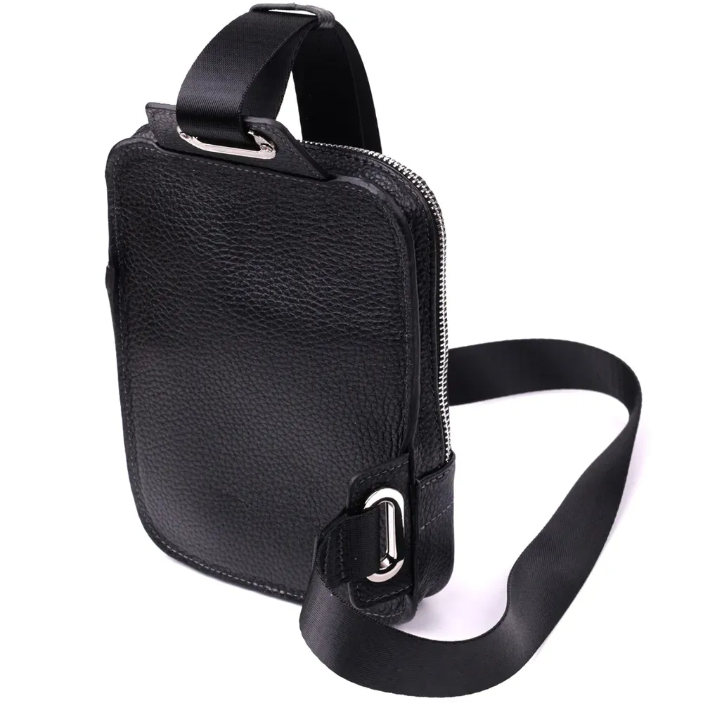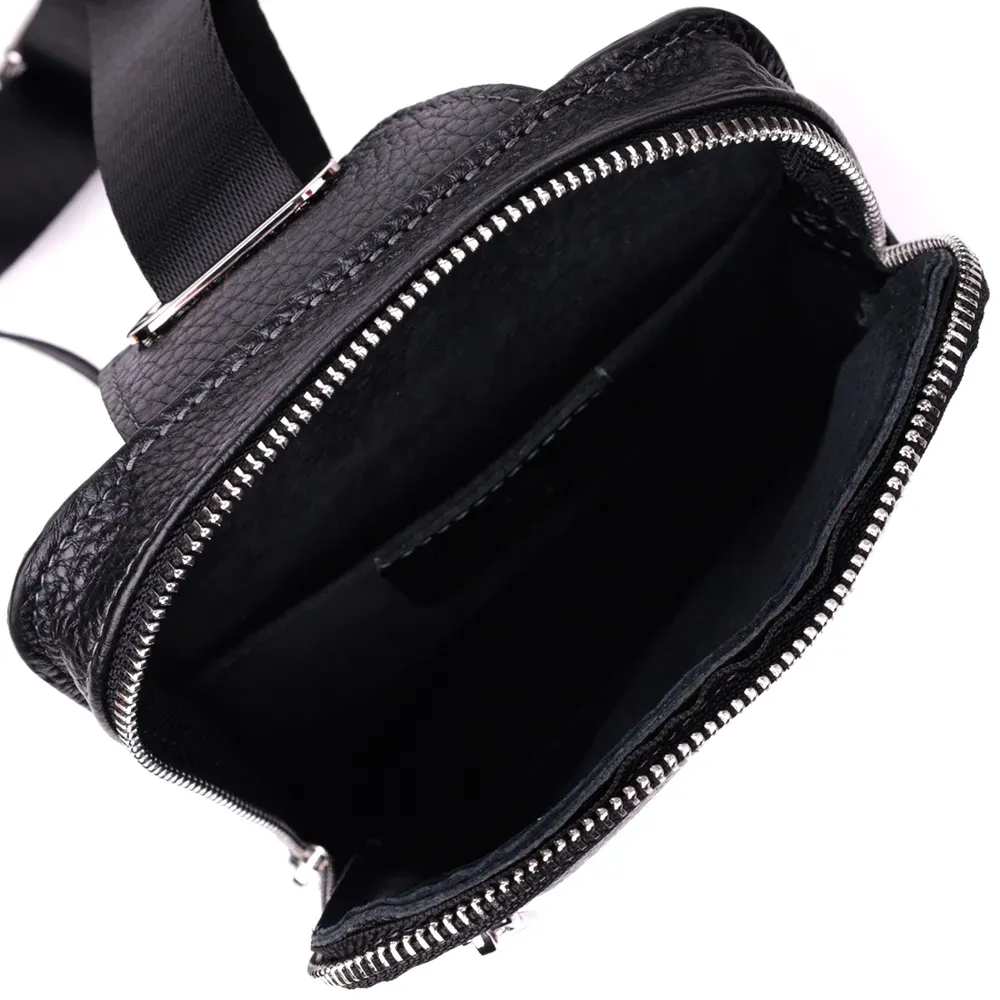 Прямокутна сумка бананка з якісної натуральної шкіри GRANDE PELLE 22877 Чорний