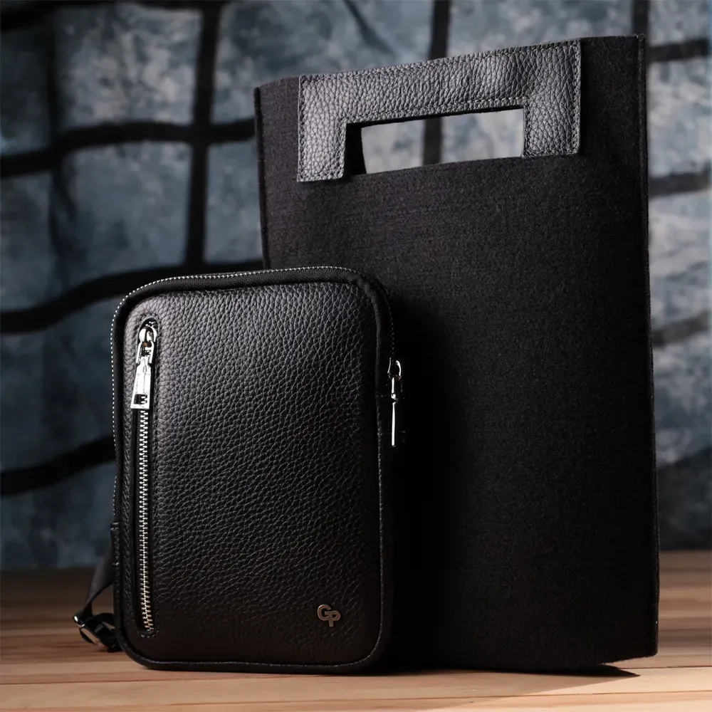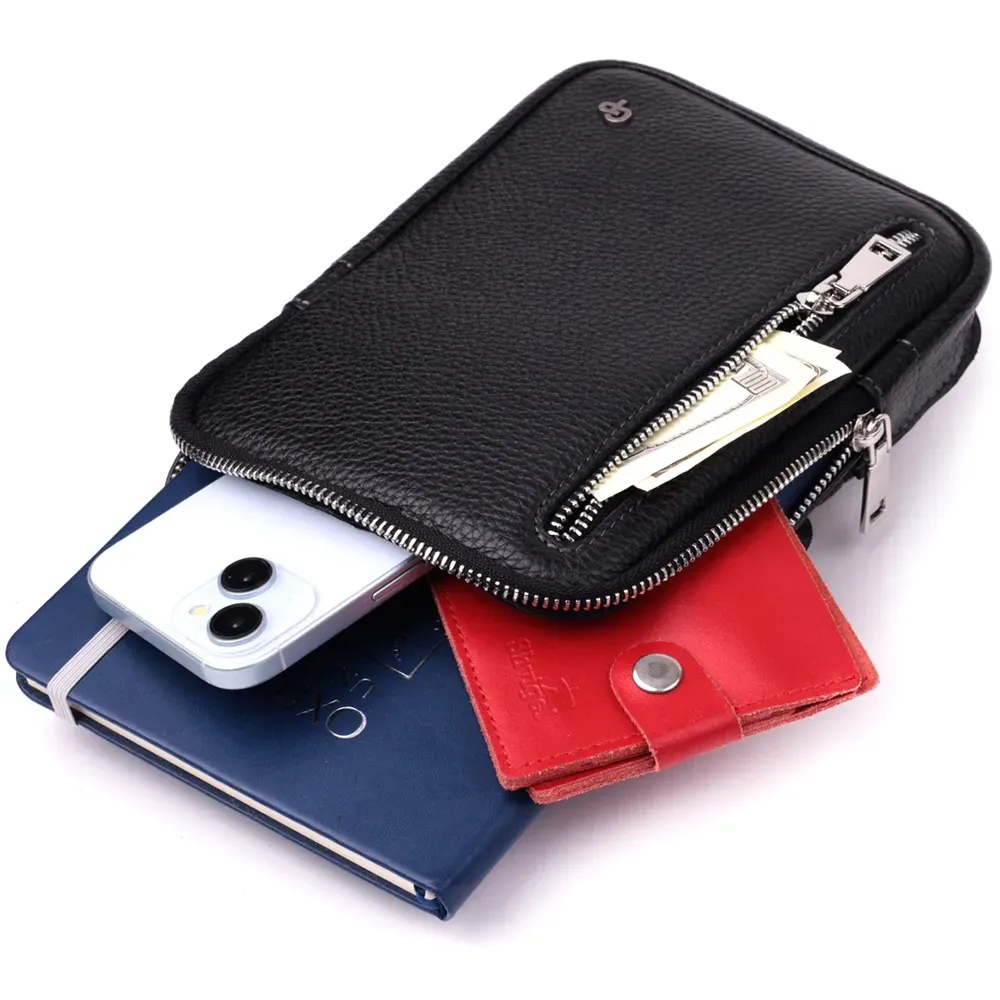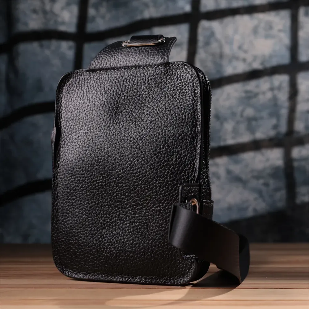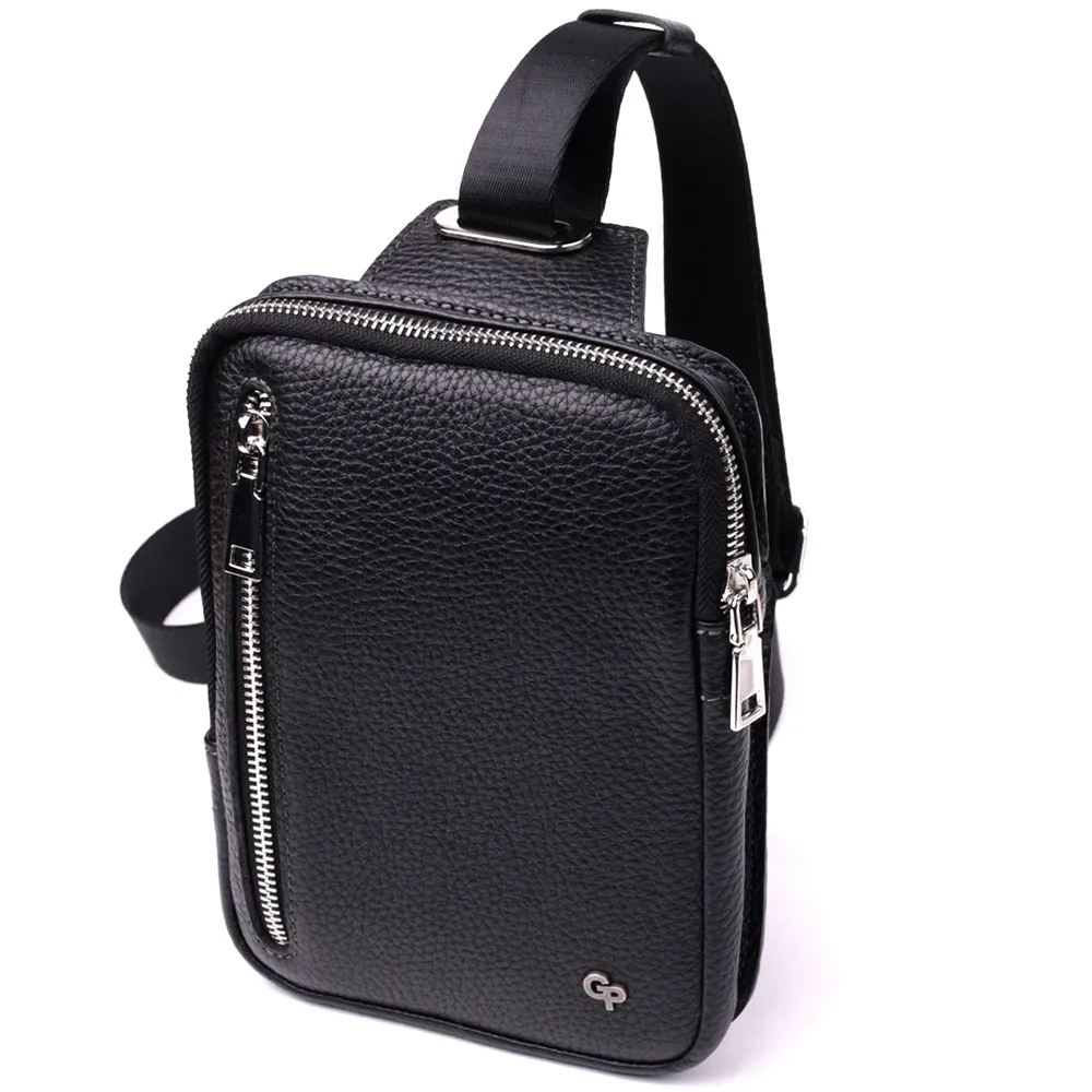 Прямокутна сумка бананка з якісної натуральної шкіри GRANDE PELLE 22877 Чорний