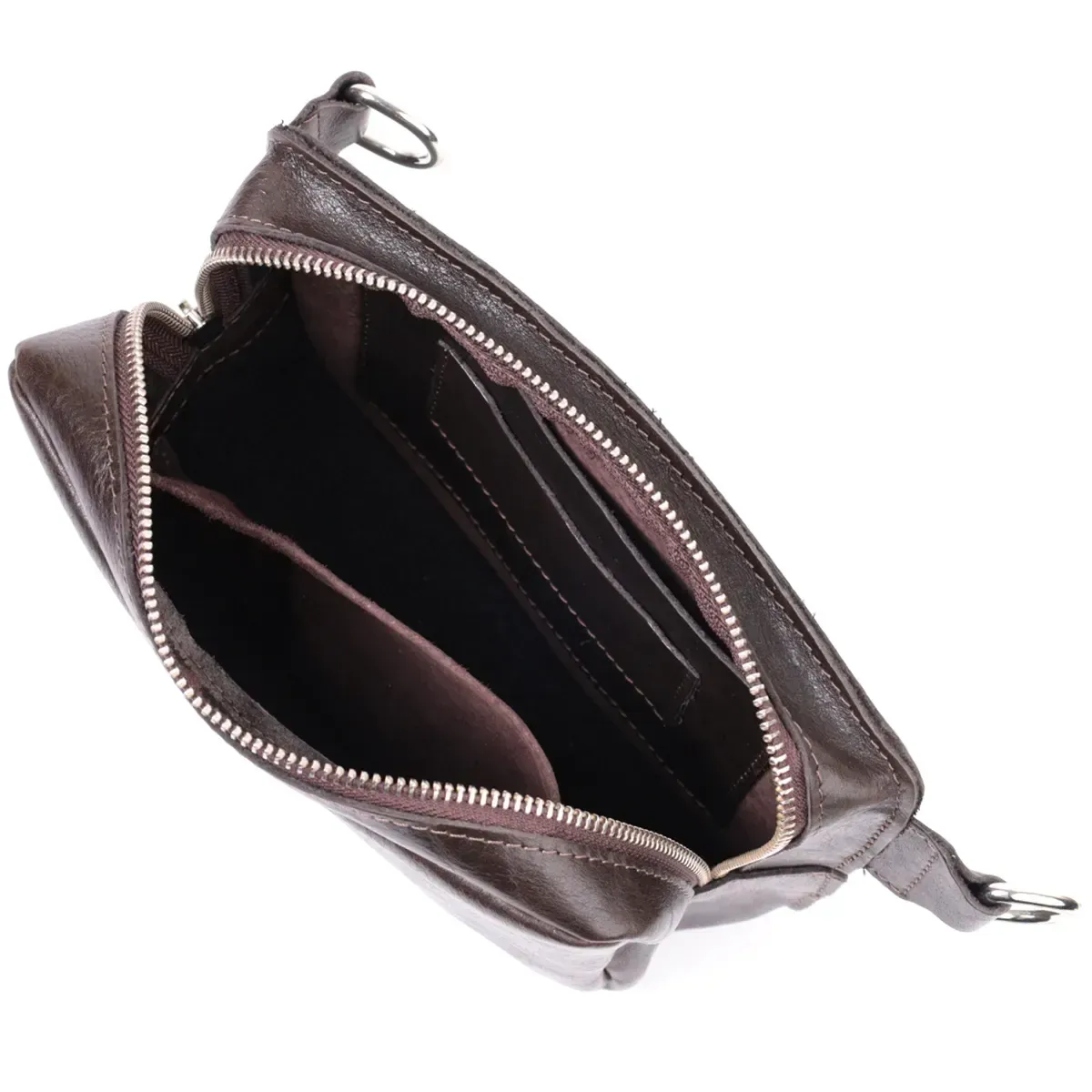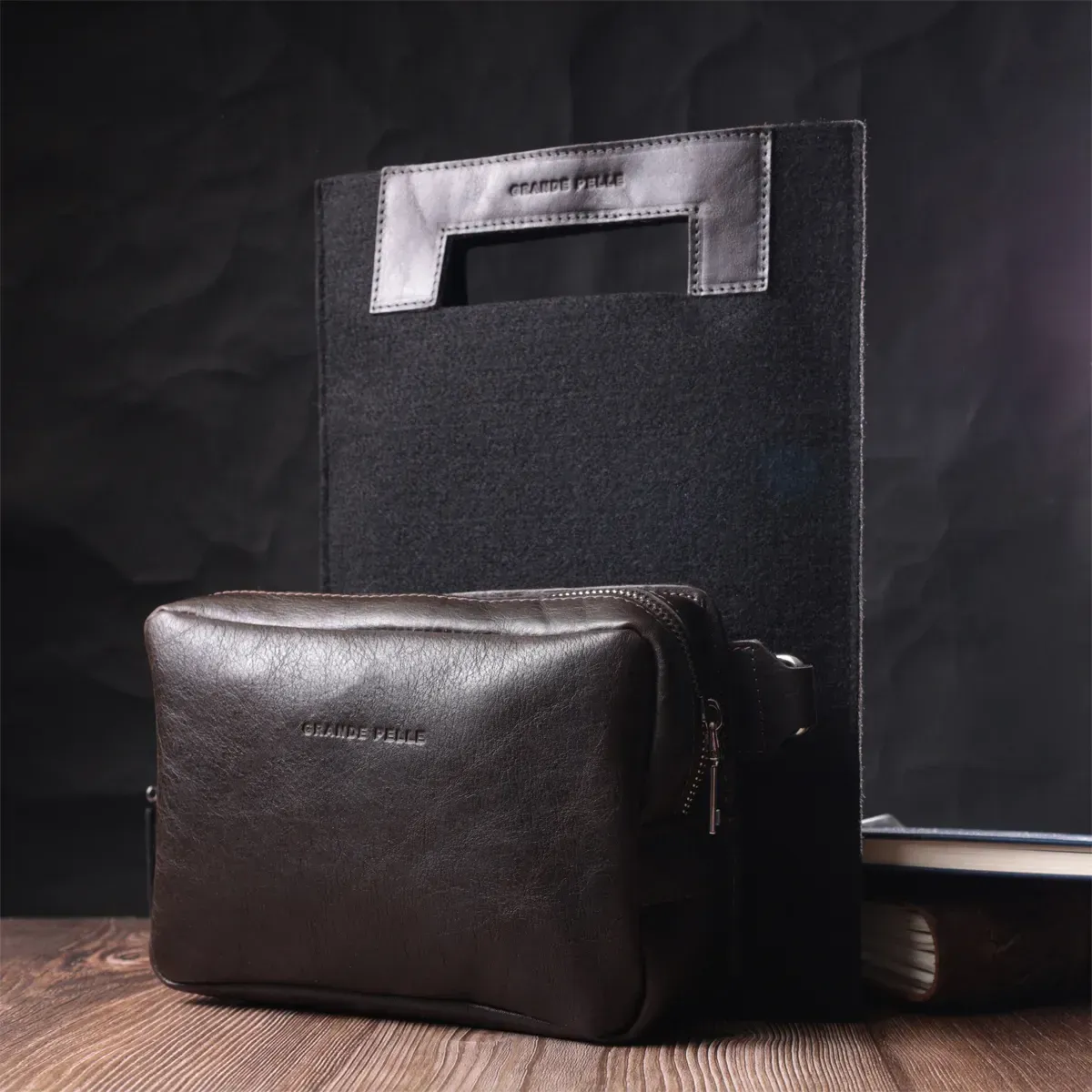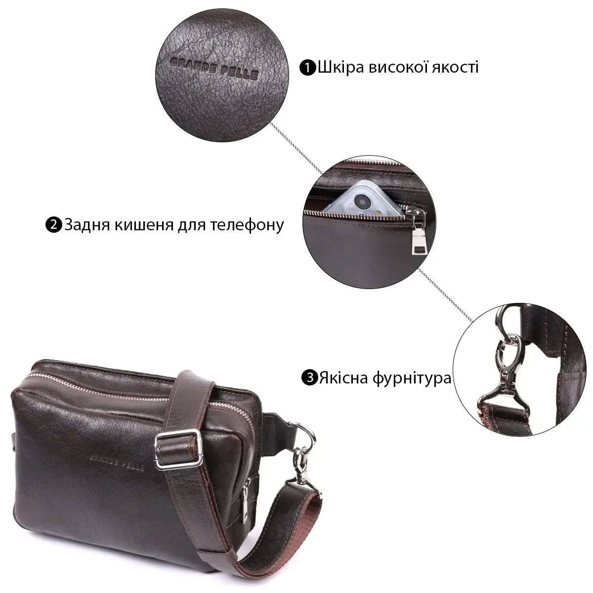 Прямокутна сумка бананка з якісної натуральної шкіри GRANDE PELLE 22575 Коричневий