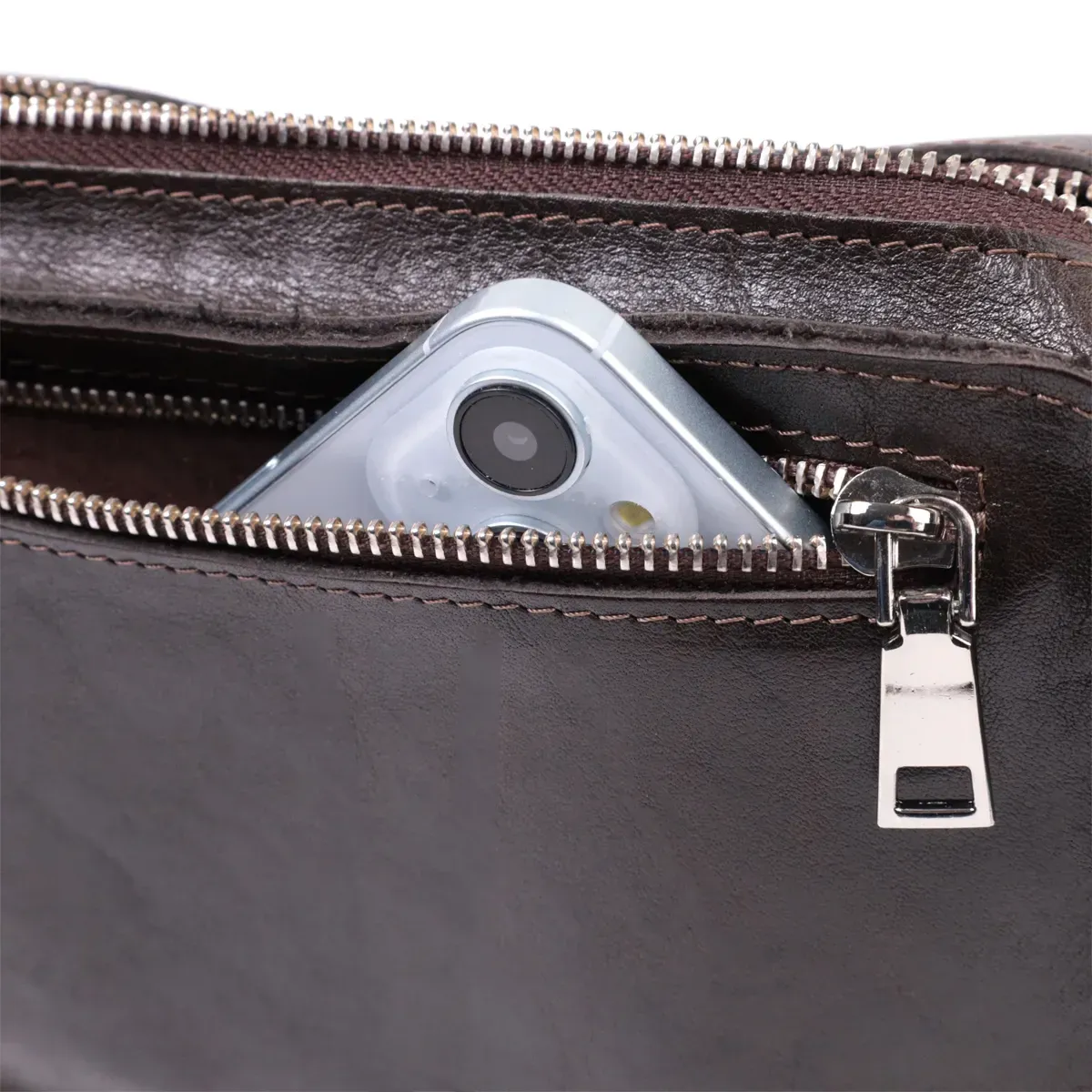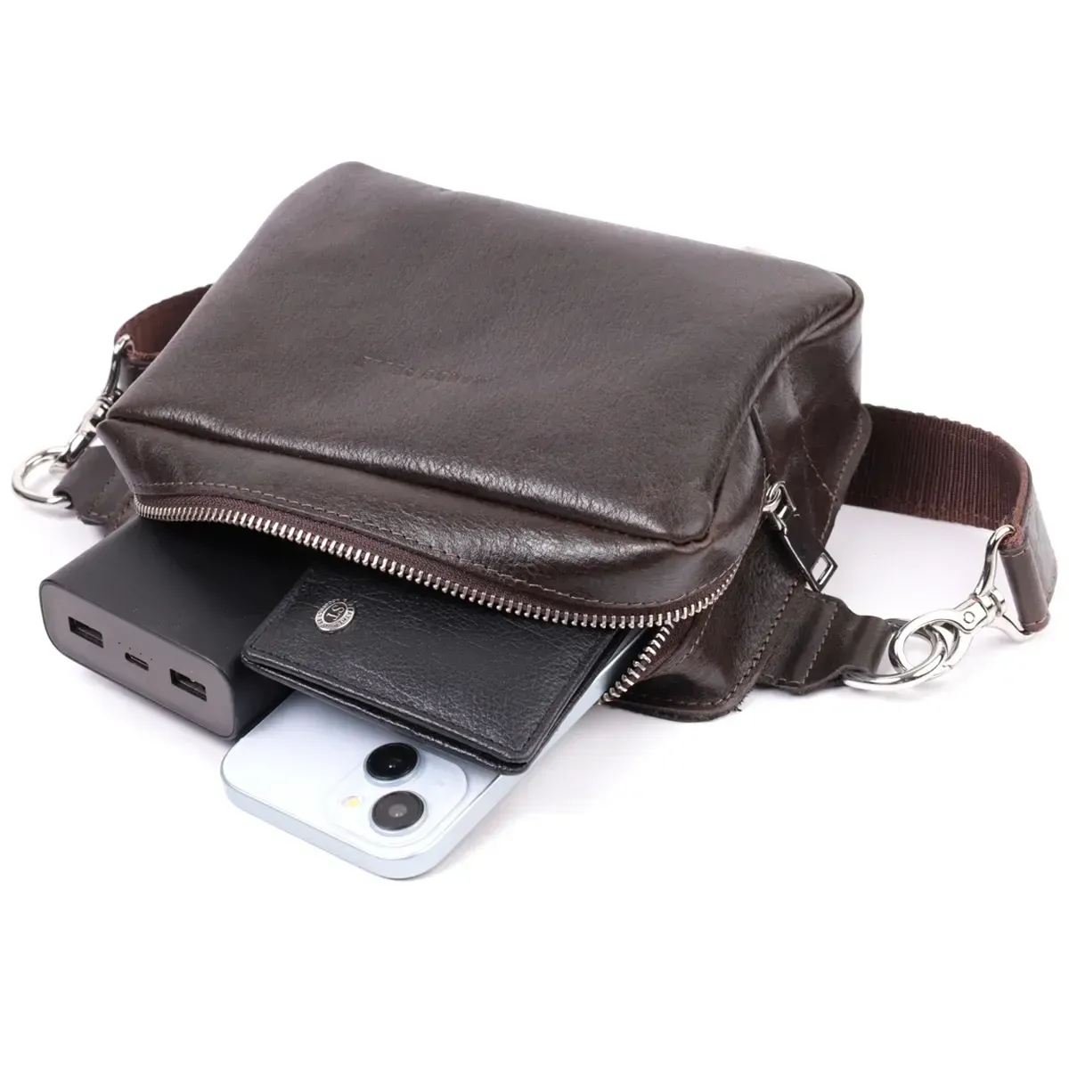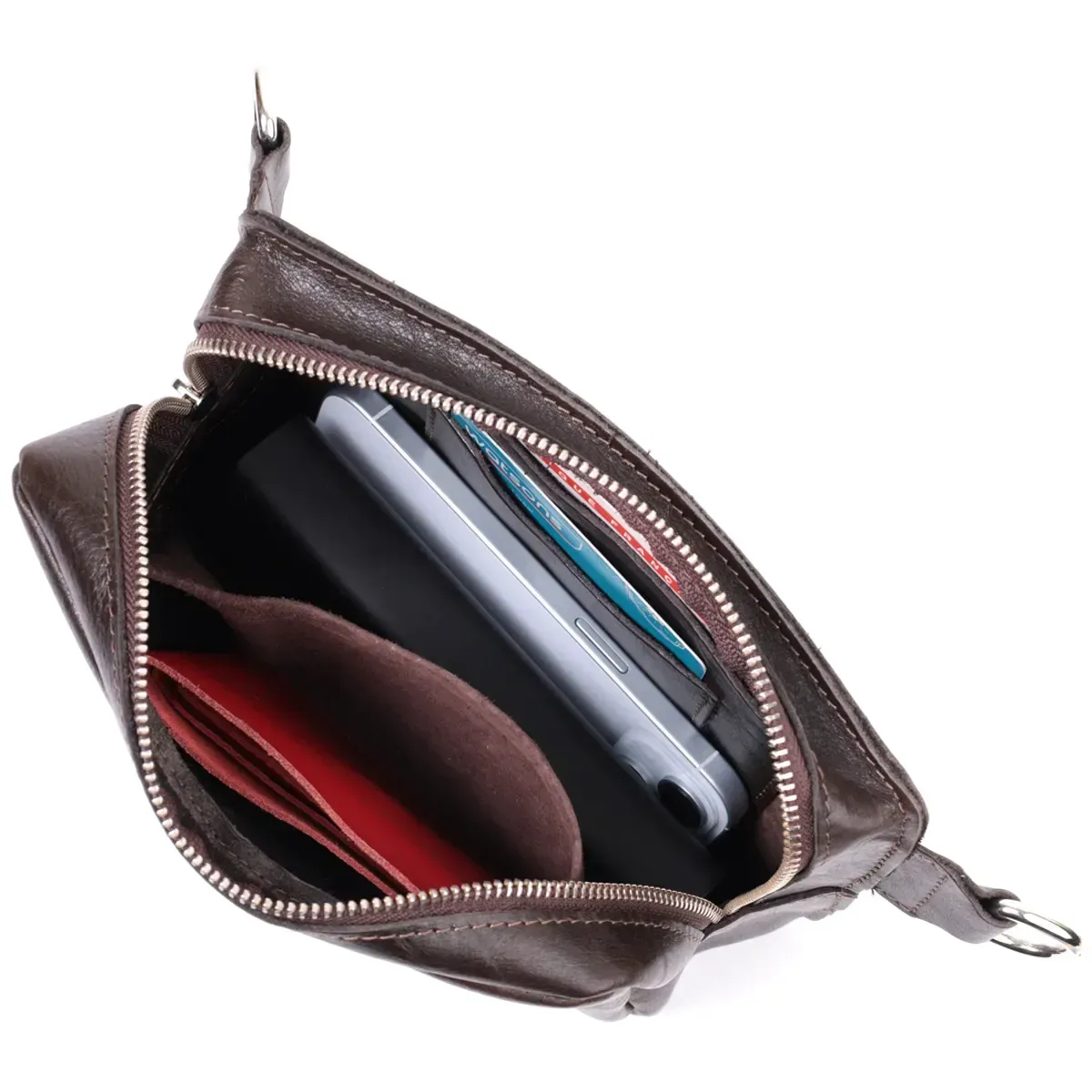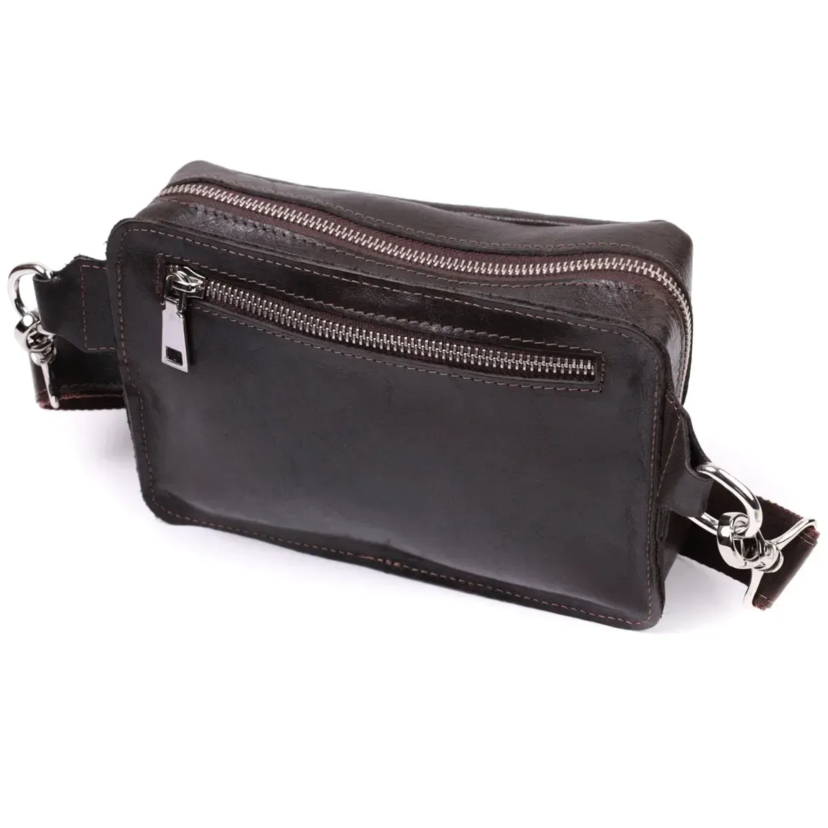 Прямокутна сумка бананка з якісної натуральної шкіри GRANDE PELLE 22575 Коричневий