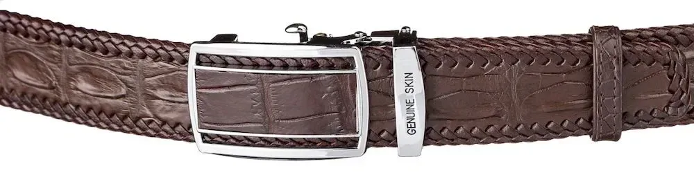 Чоловічий ремень-автомат CROCODILE LEATHER 18036 з натуральної шкіри крокодила Коричневий