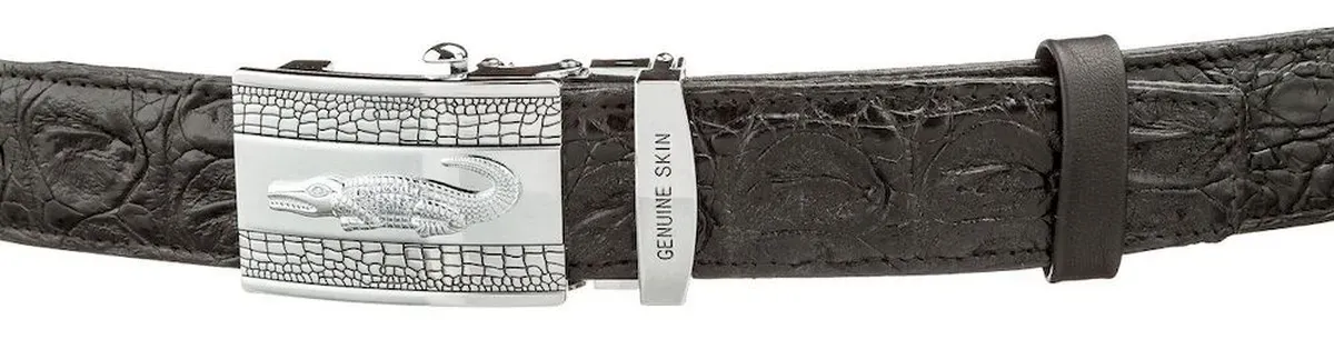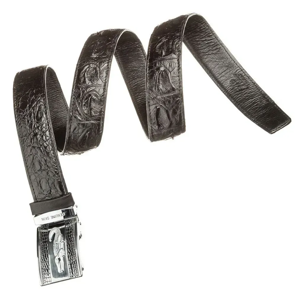 Ремінь автоматичний CROCODILE LEATHER 18605 із натуральної шкіри крокодила Чорний