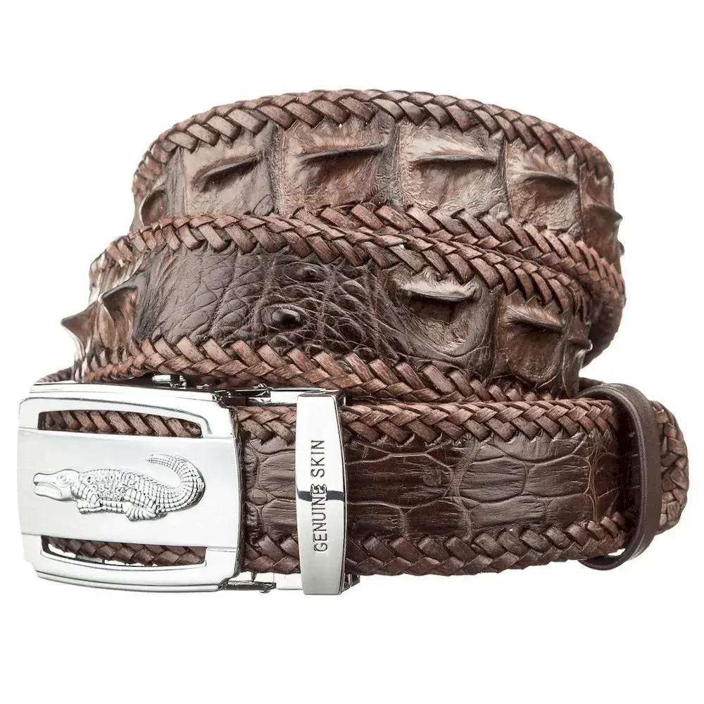 Ремінь CROCODILE LEATHER 18599 з натуральної шкіри крокодила Коричневий