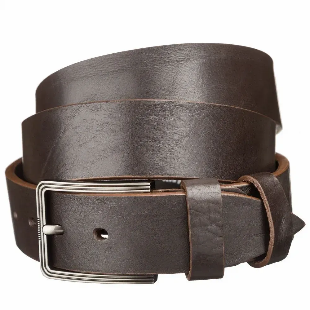 Відмінний чоловічий шкіряний ремінь під джинси. Аксесуар виконаний з якісної товстої шкіри та доповнений надійною та стильною фурнітурою у вигляді пряжки. Ремінь легко коротшає, просто відкрутити гвинт, відрізати зайву частину ременя, і прикрутити на місце. Відмінно підійде для подарунка чоловікові, другові, братові, колезі.