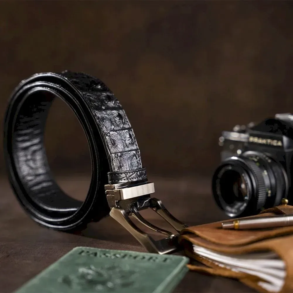 Ремінь класика з натуральної шкіри крокодила CROCODILE LEATHER 18018 Чорний