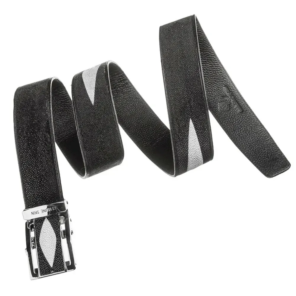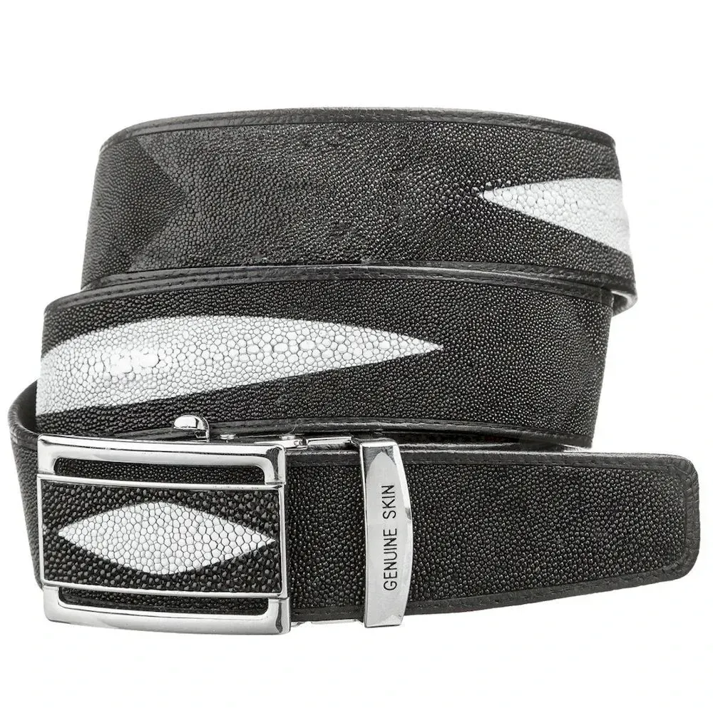 Ремінь чоловічий автомат STINGRAY LEATHER 18523 із натуральної шкіри морського ската Чорний